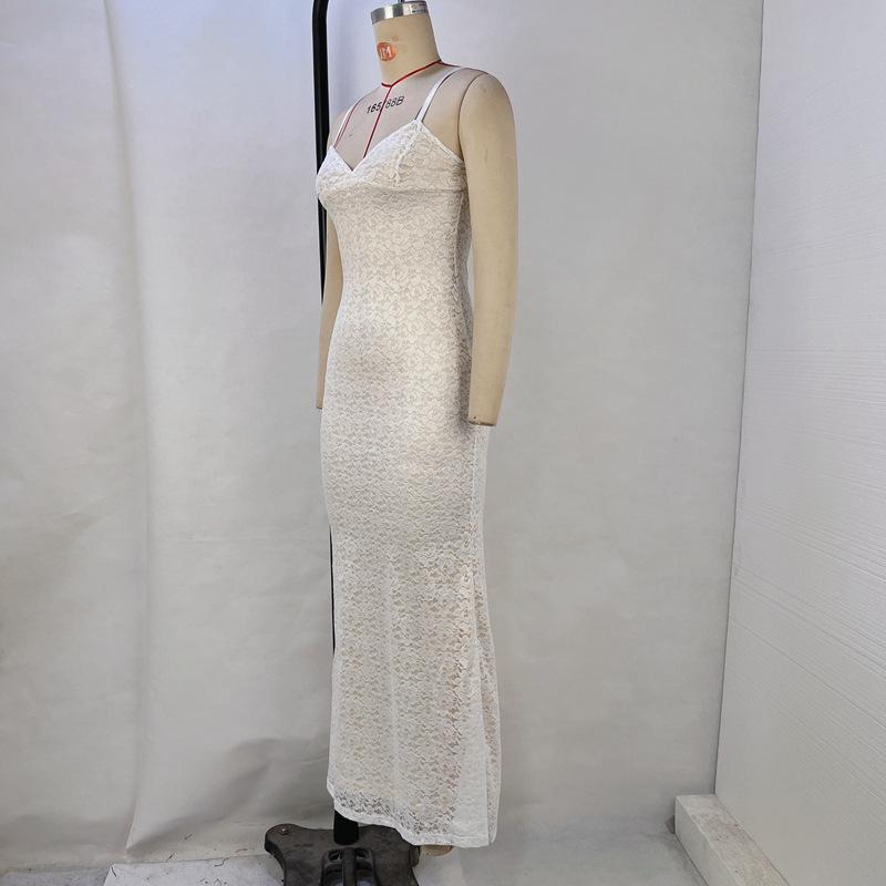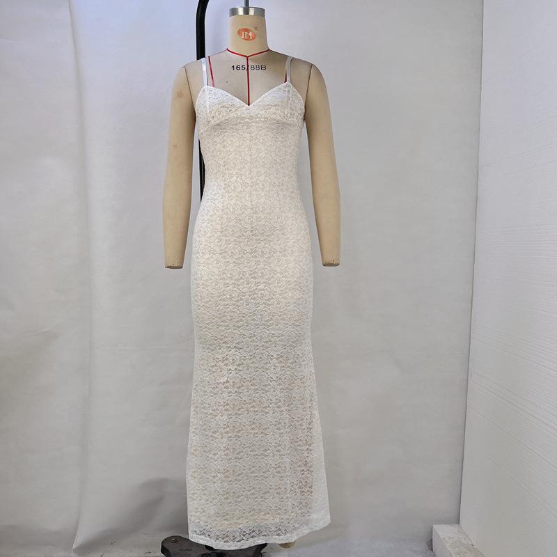 Женское летнее повседневное однотонное платье без рукавов, длинное платье с кружевным ремешком