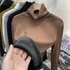 Теплый трикотаж, плюшевая утолщенная водолазка, базовая рубашка, женский пуловер, тонкий топ с длинными рукавами, простой повседневный новый модный осенне-зимний вариант