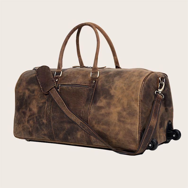 Кожаная дорожная дорожная сумка на тележке для мужчин и женщин, 24-дюймовая дорожная сумка для путешествий на ночь и выходных, дорожная сумка для спортзала с колесиками для удобной переноски