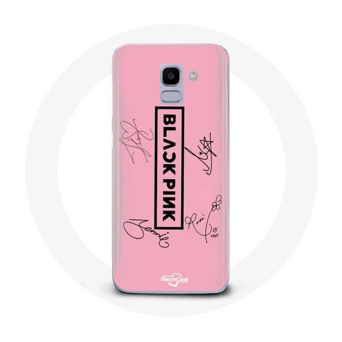 Чехол для Samsung Galaxy A6 2018 Blackpink Подписи Участниц Логотип Born Pink Черный Розовый Фон