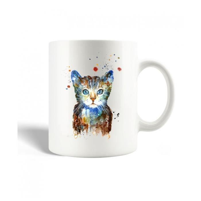 Mug en Céramique - Chat Coloré - 30cl - Compatible Lave-Vaisselle - Hauteur 9,5 cm - Largeur 8 cm