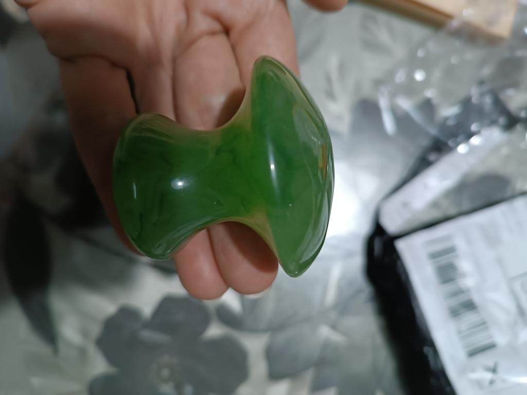 Скребок Гуа Ша, зелёный,очень обтекаемый камушек, прохладно приятный🥰👍спасибо за такую прелесть🎉