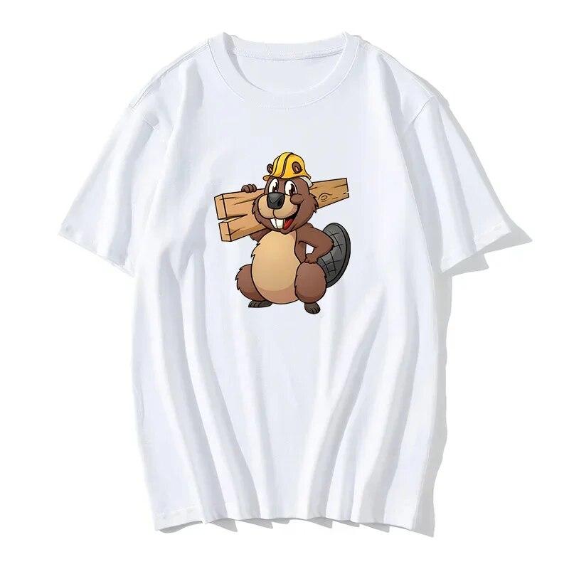 Милые топы с круглым воротником в виде бобра для студентов, последняя повседневная футболка, новинка, футболки с графическим принтом для игр, одежда унисекс, хлопковая футболка