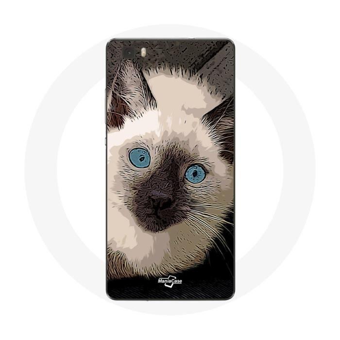 Coque pour Huawei P8 Lite Chat Siamois Noir et blanc aux Yeux Bleus