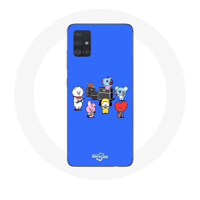 Coque pour Samsung Galaxy A51 5G BTS BT21 Tata Chimmy Cooky Rj Koya Shooky Et Mang Jouent De la musique Fond Bleu