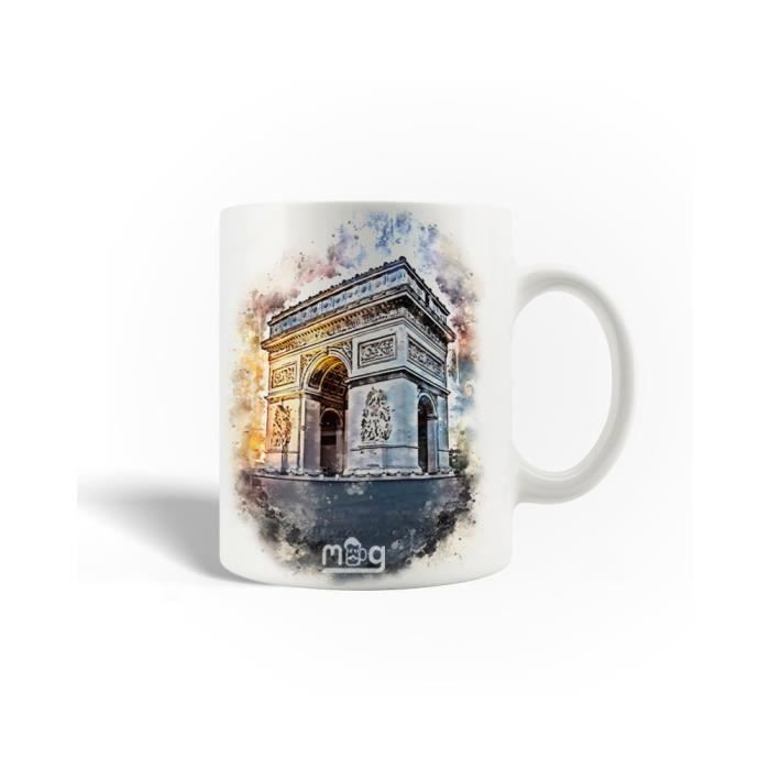 Mug en Céramique - Arc de Triomphe - 30cl - Blanc - Compatible Lave-Vaisselle - Rond