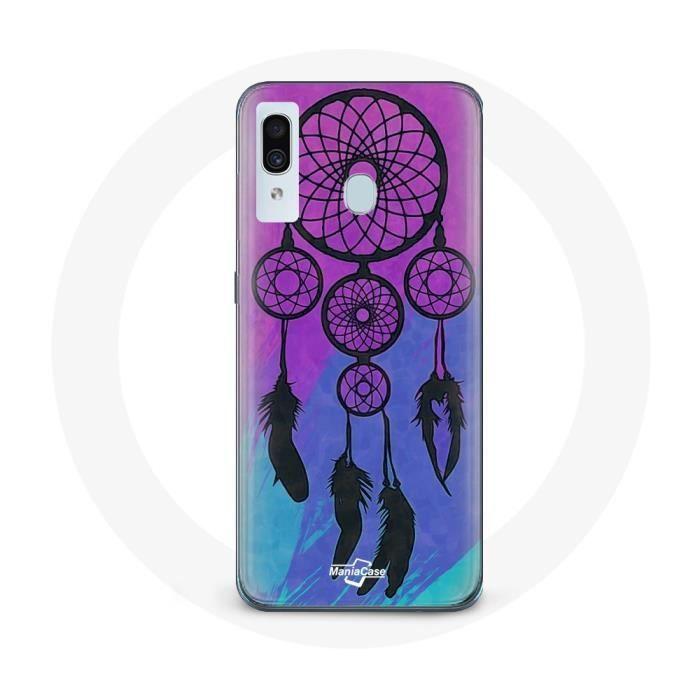 Coque pour Samsung Galaxy A20e Attrape Rêve Noir Fond Bleu et Violet