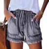Женские шорты с эластичным поясом средней посадки и широкими карманами на шнурке, впитывающие пот, однотонные манжеты с кисточками, спортивные шорты, уличная одежда
