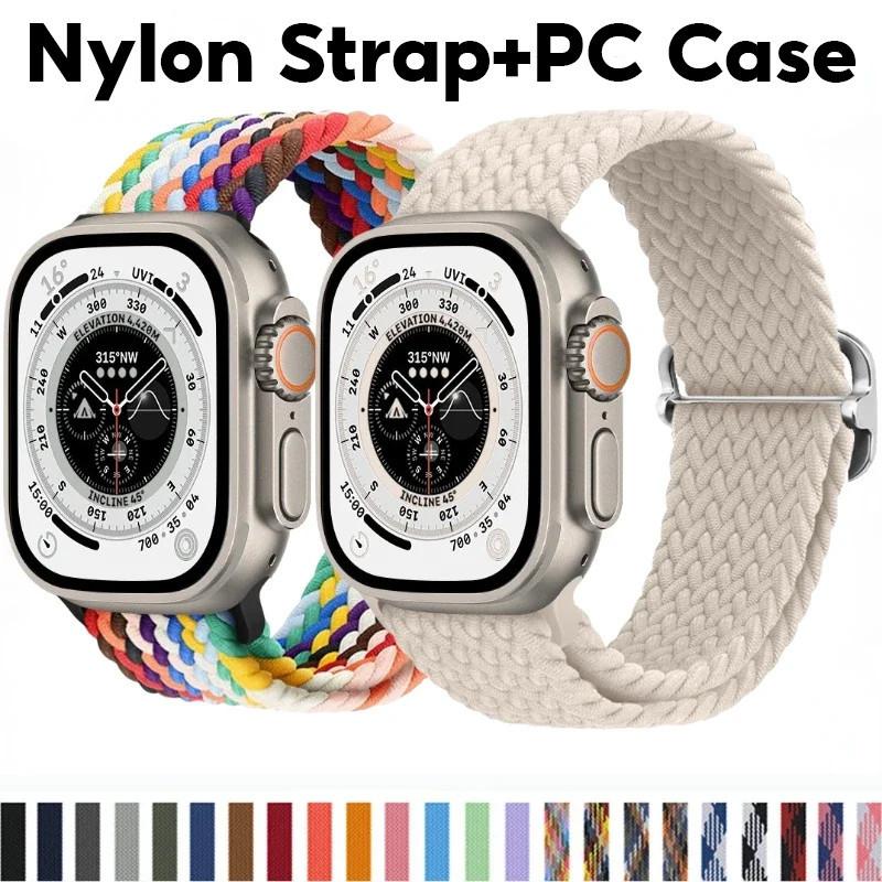 Нейлоновый ремешок и чехол для ПК, эластичный тканый браслет, защитный чехол для Apple Watch Series 9, 8, 7, 6, 5 Se 4 I Watch 45 мм, 44 мм, 40 мм, 41 мм