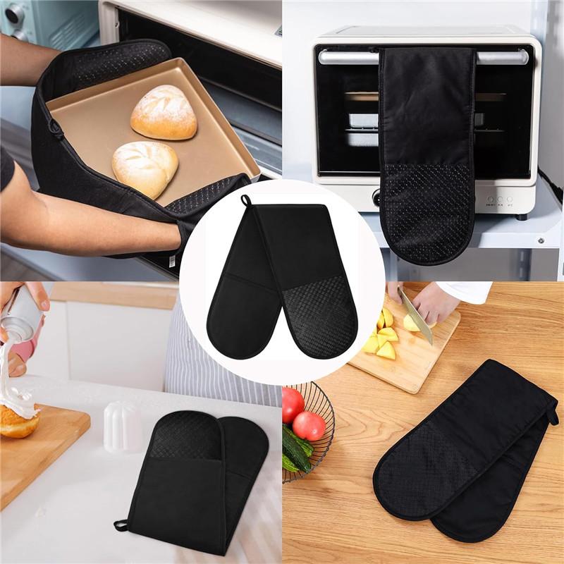 【Идеальный размер】 Вы получите 1 рукавицы для выпечки.. Его размер 18×84 см.. Полезный для повседневной выпечки, идеальный черный кухонный аксессуар для вашего дома..