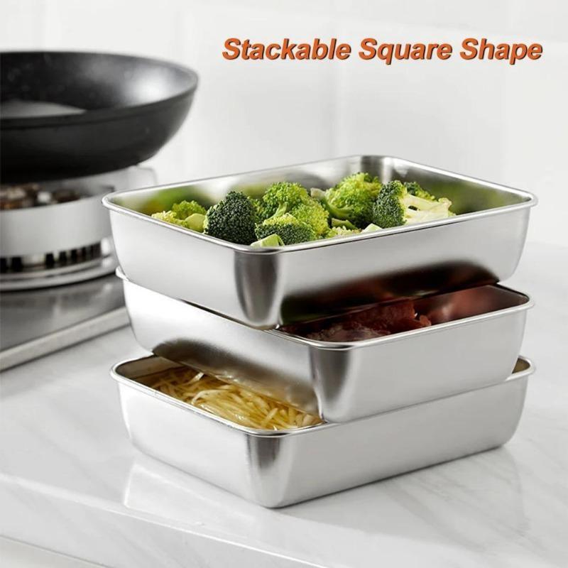 2 шт./компл. подносы для хранения продуктов из нержавеющей стали, прямоугольные подносы для колбасы, лапши, фруктовое блюдо с крышкой, органайзеры для домашней кухни, пищевой контейнер