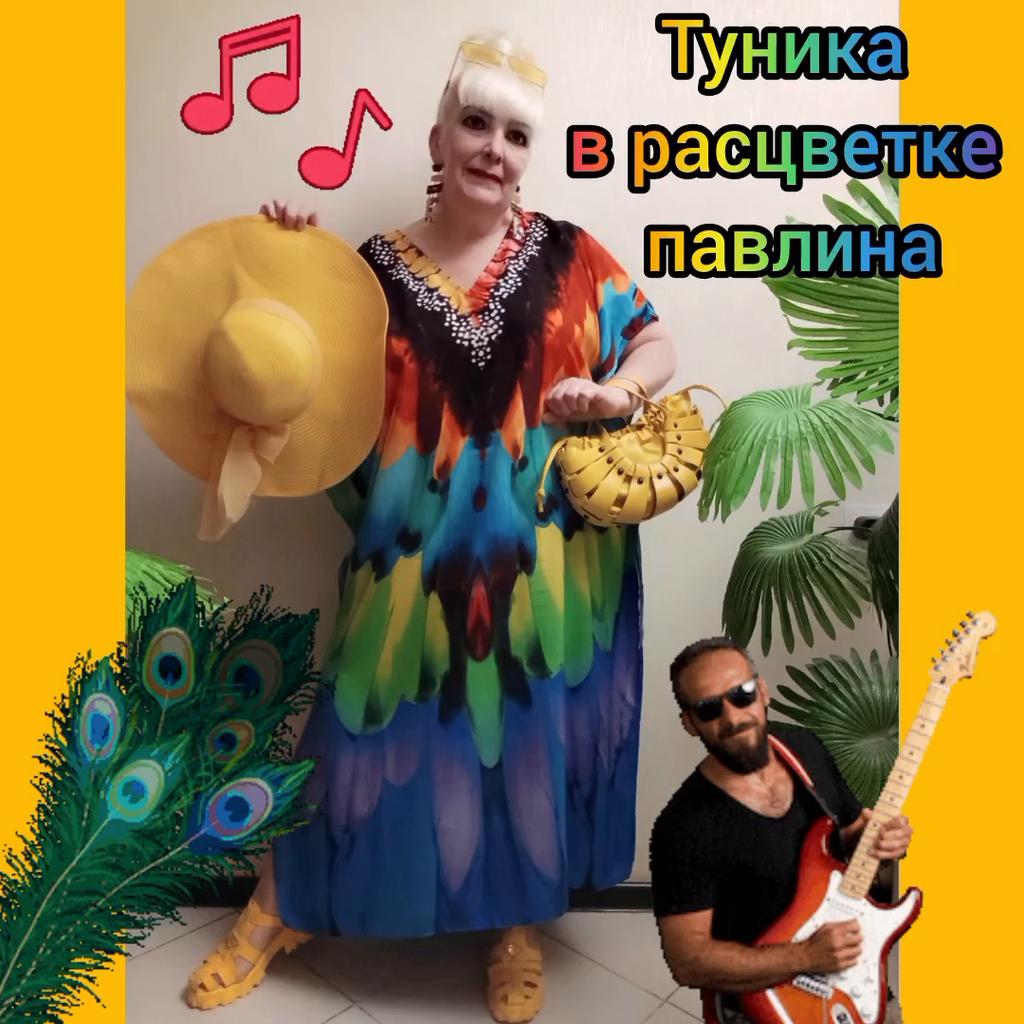 🦚👗🦚КРАСОЧНАЯ ТУНИКА ИЗ ВИСКОЗЫ В РАСЦВЕТКЕ ПАВЛИНА🦚👗🦚 👉Жми на СЛАЙД ШОУ! Потрясающе красивое и яркое платье-туника! Расцветка напоминает перья павлина. Ну во всяком случае я так увидела) Туника прямого силуэта. Имеет V-образный вырез у горловины и два разреза внизу по бокам. Платье сшито из очень нежной и приятной ткани. На бирке указано, что это вискоза. Ткань не просвечивается, в меру мнётся, легко гладится утюгом и на фигуре красиво струится. Принт весьма сочный и красочный. Превосходное цветовое сочетание для любительниц яркого образа. Платье представлено в едином размере и на мои параметры 110-95-118 этот размер отлично подошёл. Ширина туники составляет 180 см, а длина 125 см. При моем росте 170 см длина доходит почти до пола. В тунике удобно, она не стесняет движений и отлично маскирует проблемные места у фигуры. Пошив туники фабричный, претензий нет. Швы обработаны оверлоком очень аккуратно. Платье мне очень понравилось и я буду носить его с большим удовольствием в теплое время года. И я думаю, что не только на пляж, но и просто по городу. 🎼🎶🎵В слайд шоу использована композиция "Ночная птица" в исполнении Константина Никольского ( группа "Воскресенье").