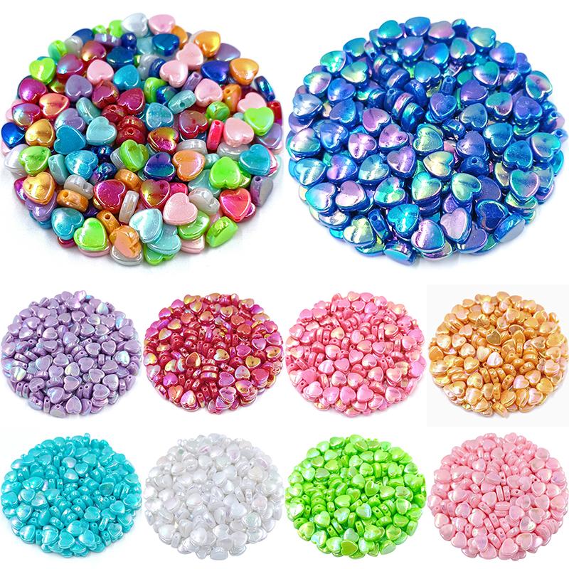 DIY для 50 шт. сердце акриловые бусины для изготовления ювелирных изделий AB цвет оптовая продажа ожерелье браслет кулон