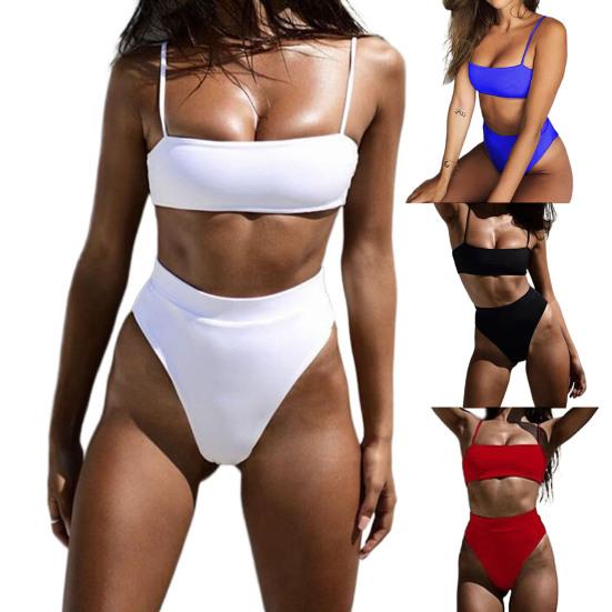 2 шт./компл. комплект бикини, однотонный трехточечный эластичный женский купальник на тонких бретелях — купить товар онлайн с бесплатной доставкой до всему миру!