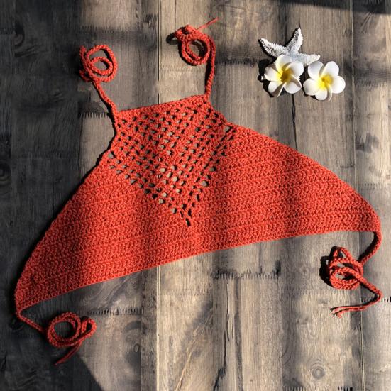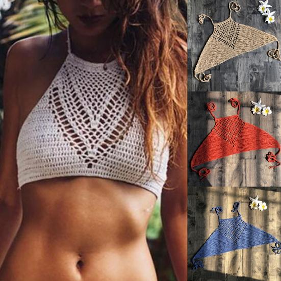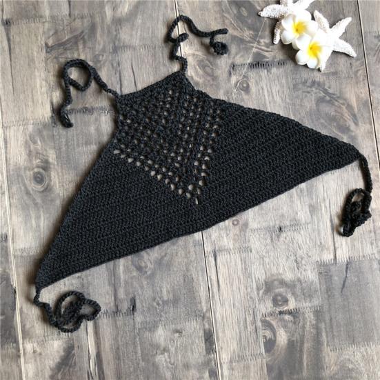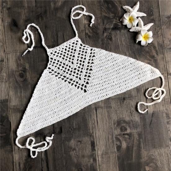 Топ для плавания, вязаный крючком, в стиле бохо, бикини с открытой спиной, на бретельках для плавания