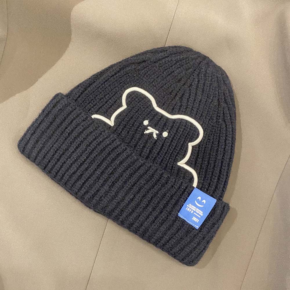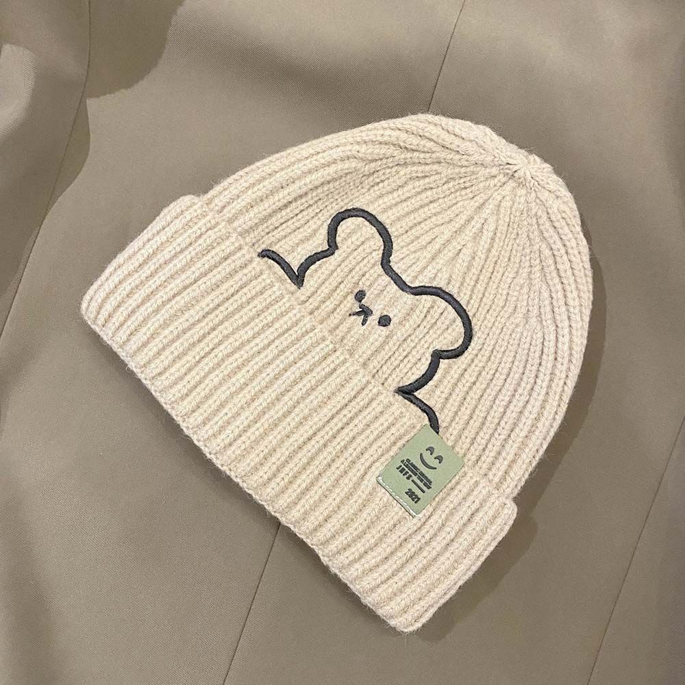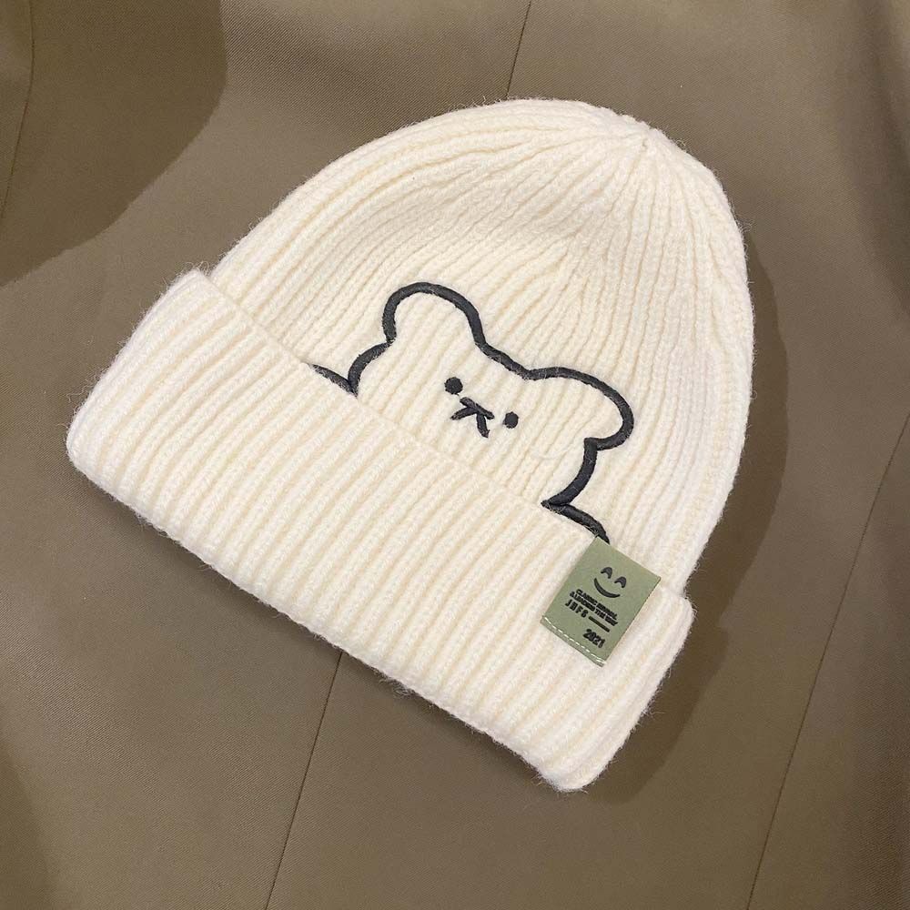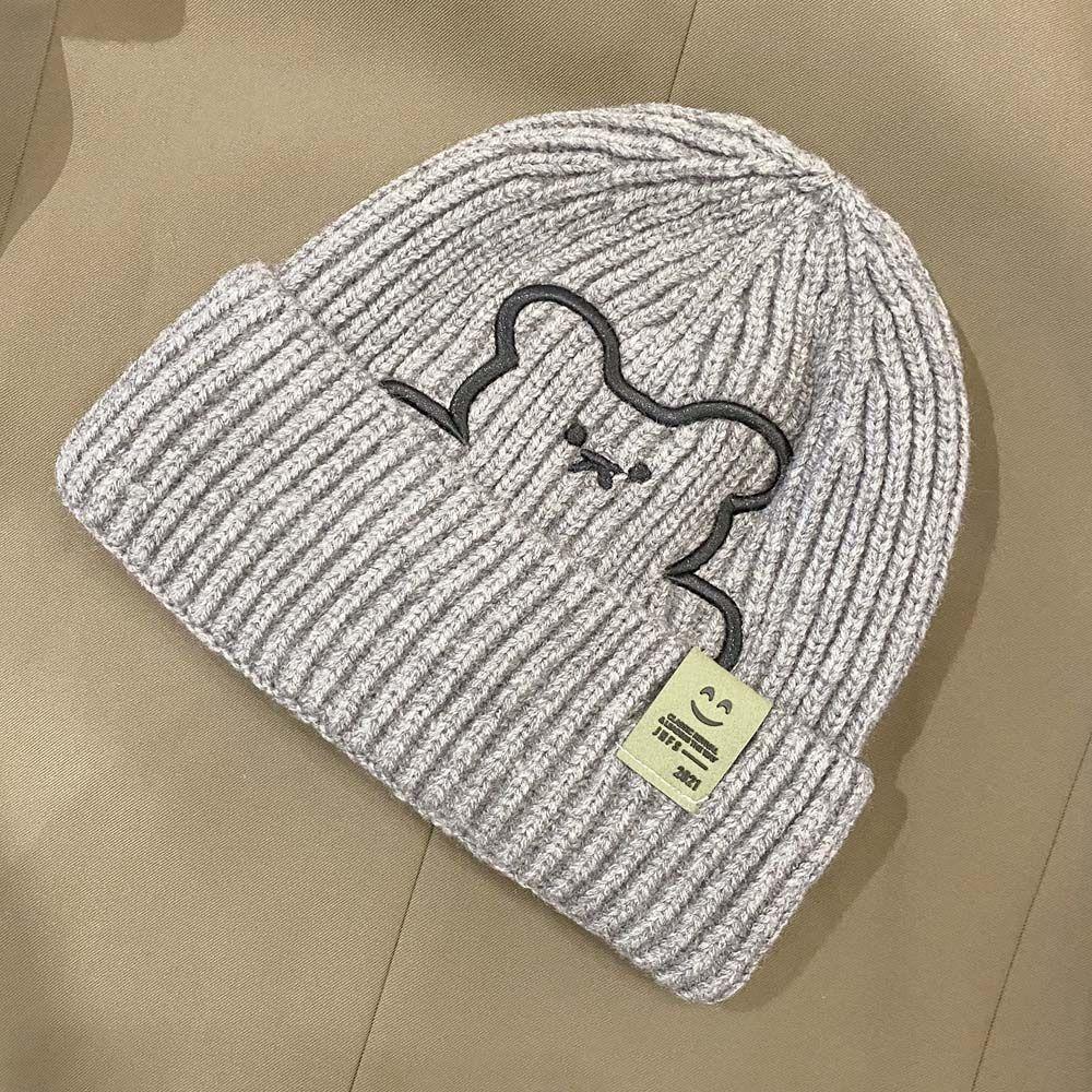 Полосатая зимняя универсальная шерстяная шляпа с вышивкой медведя, шапки в корейском стиле, вязаная шапка, женские шапочки