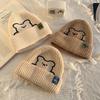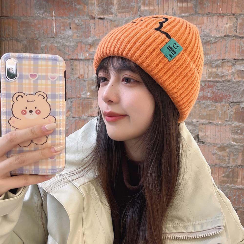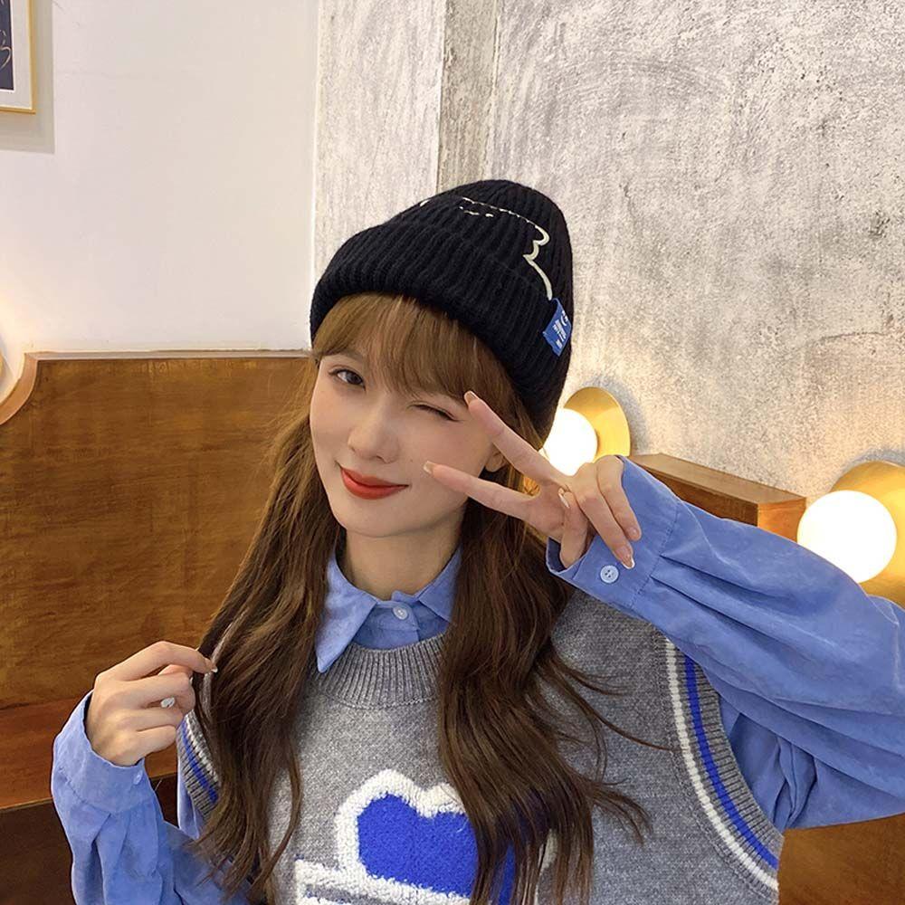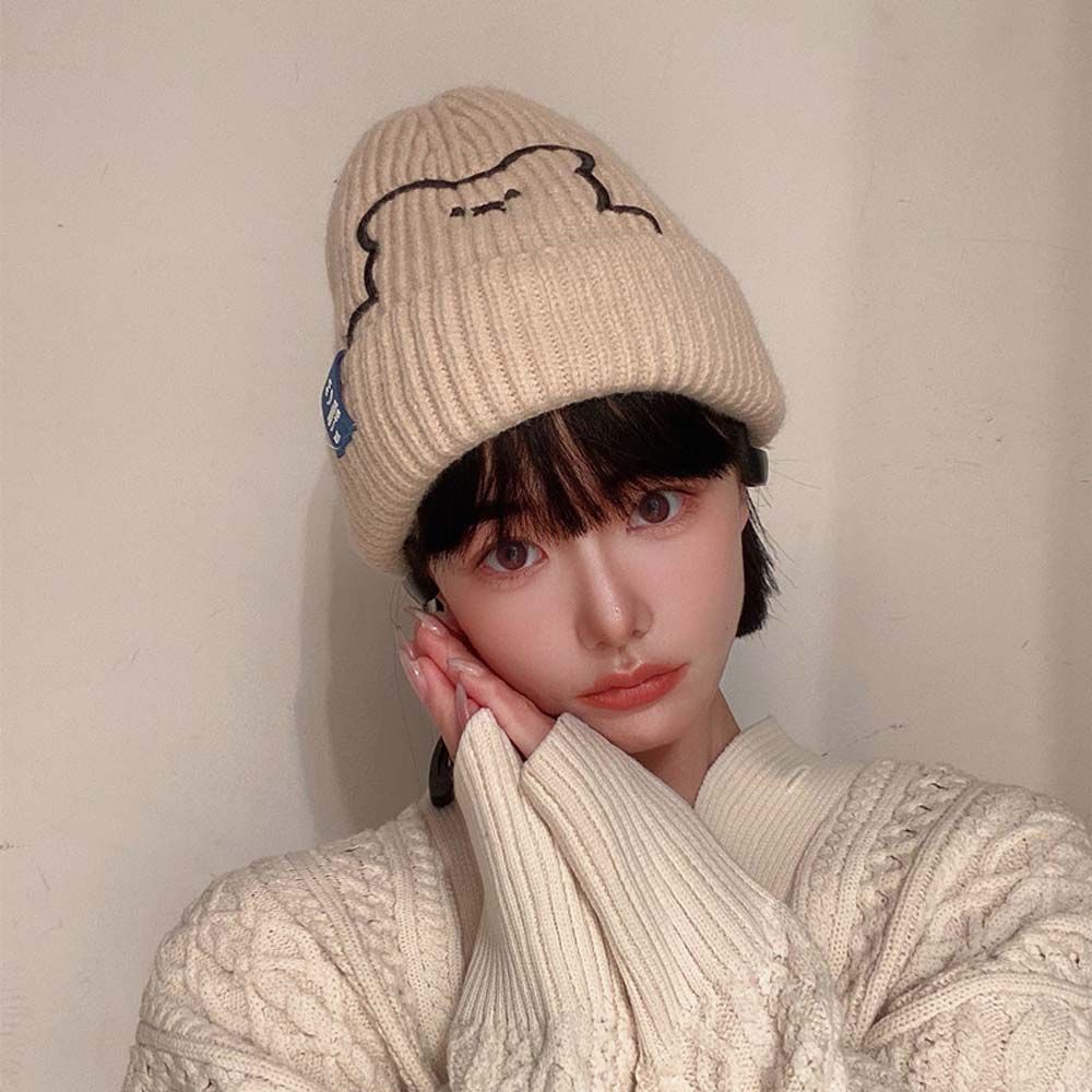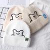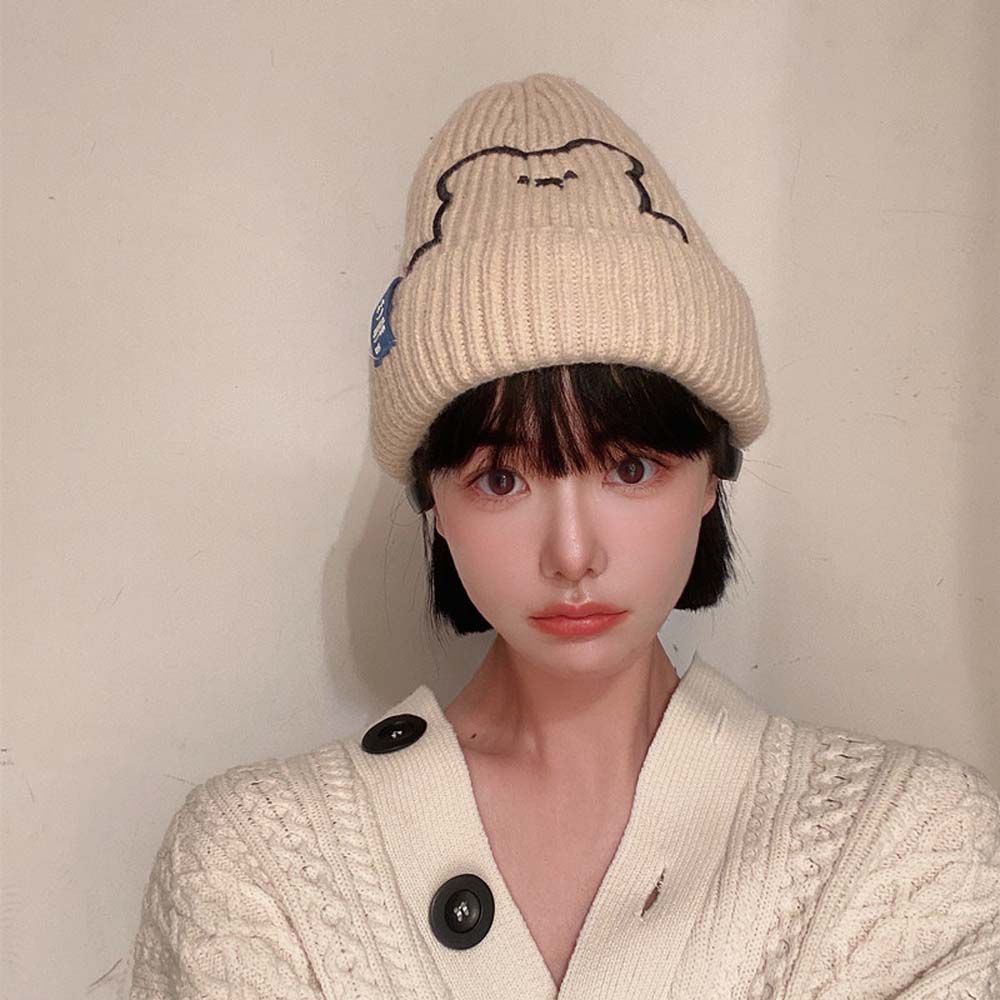 Полосатая зимняя универсальная шерстяная шляпа с вышивкой медведя, шапки в корейском стиле, вязаная шапка, женские шапочки