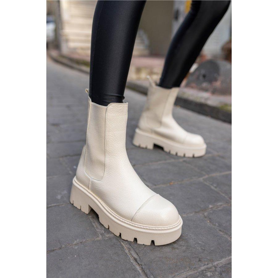 Женские повседневные ботинки из натуральной кожи на толстой подошве, длинные Челси