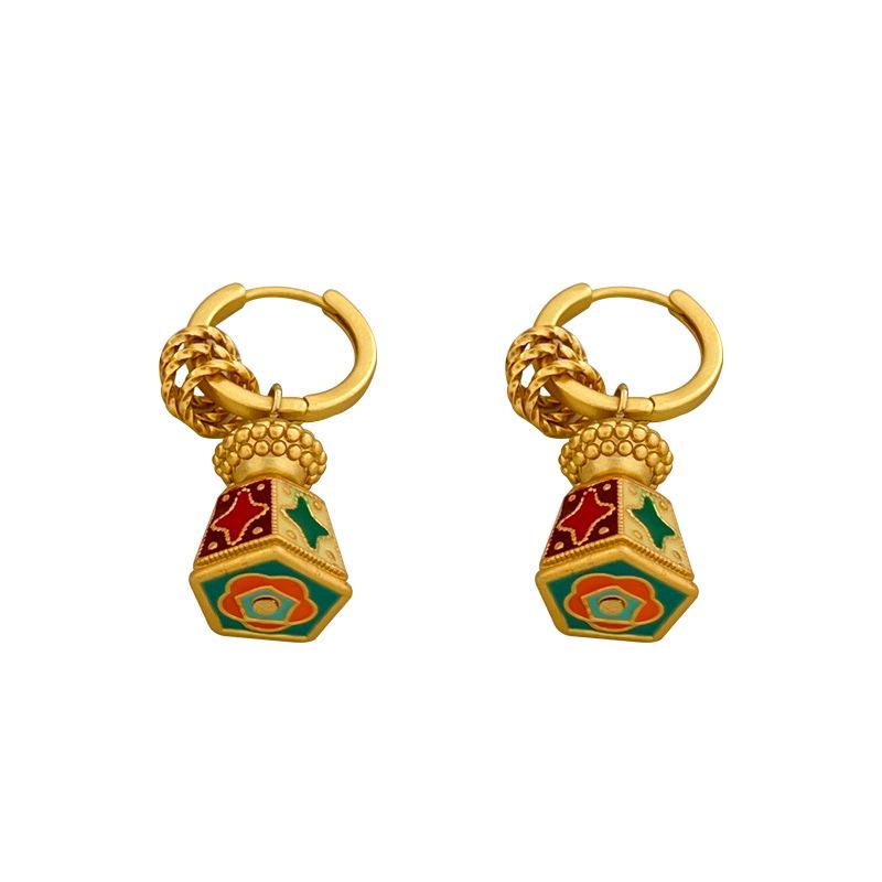 Ретро-стиль с большим количеством эмалированных серег, капающих маслом, пряжки для ушей, легкие роскошные модные серьги среднего возраста высокого класса