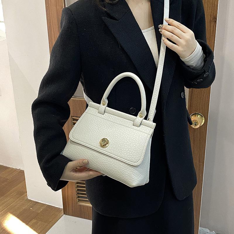 2024 однотонная модная индивидуальная повседневная маленькая сумка из искусственной кожи, простая и стильная сумка через плечо, женская сумка с металлической пряжкой