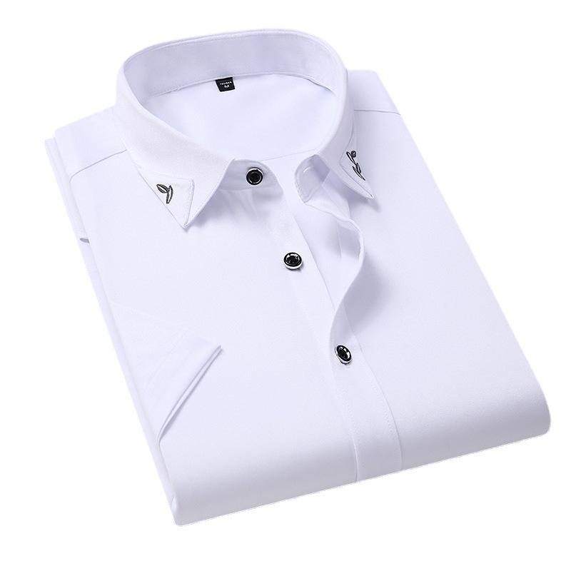 Рубашка с короткими рукавами Мужская деловая нежелезная однотонная повседневная мужская белая рубашка
