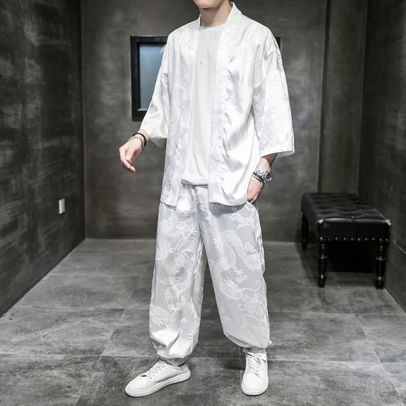 Мужской костюм-кимоно-кардиган, летний кимоно-кардиган + свободные брюки, комплект из 2 предметов — купить товар онлайн с бесплатной доставкой по всему миру!