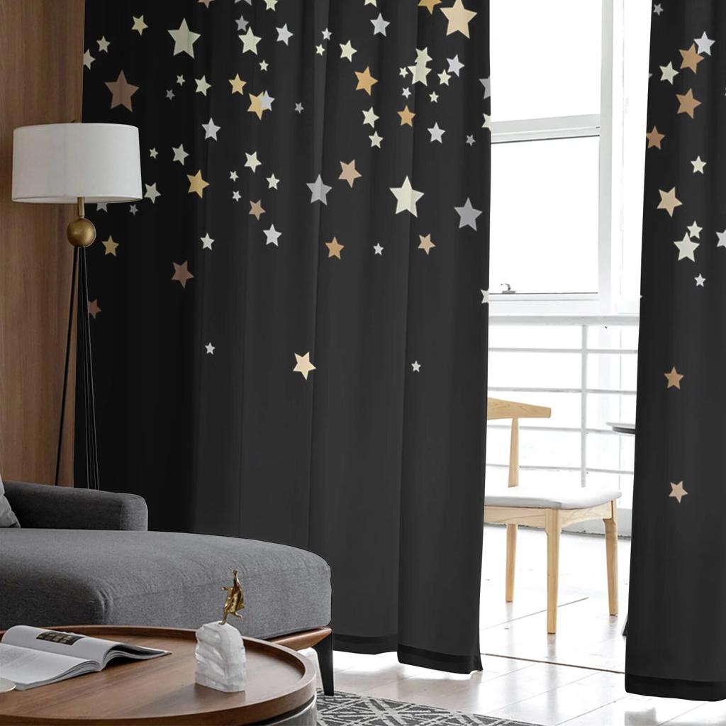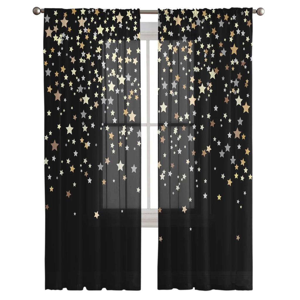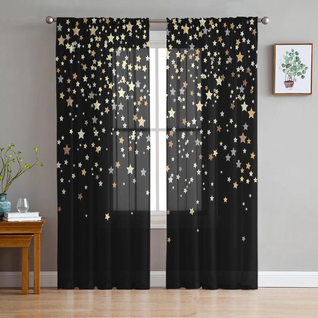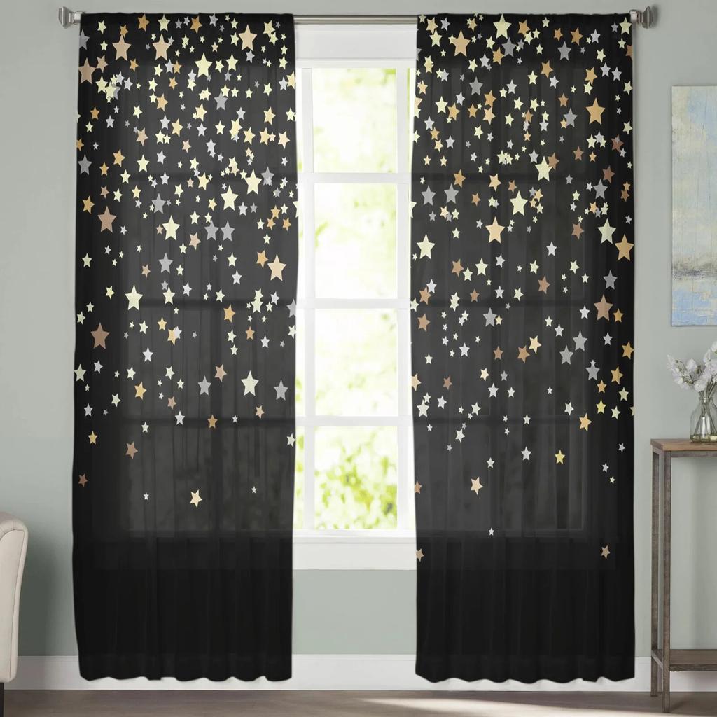 Тюлевые шторы с украшением в виде темных ночных звезд для гостиной, прозрачные занавески для спальни, вуаль, декоративные украшения для окон