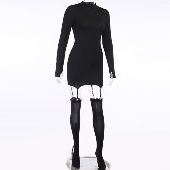 Сексуальное женское мини-облегающее платье с длинными рукавами и пряжкой на подтяжках и чулками