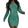 Женское платье с блестящими пайетками, облегающее платье-футляр с длинными рукавами и круглым вырезом, облегающее однотонное платье длиной выше колена, для выпускного вечера, клуба