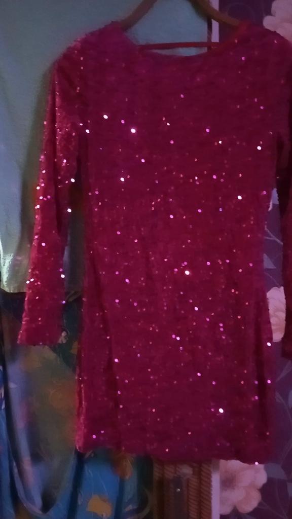 Платье, цвет как на фото продавца, очень мне нравится, само бархатное с пайетками, спина голая, платье мини, но нам не по возрасту, потому что мини, очень жаль, покупала для дочери, ну придется кому нибудь подарить, заказывала 48 размер