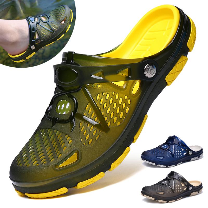 Летние мужские сандалии, сабо, уличные повседневные пляжные тапочки, дышащая обувь для водных видов спорта, шлепанцы, мужские кроссовки для плавания цвета морской волны — купить товар онлайн с бесплатной доставкой по всему миру!