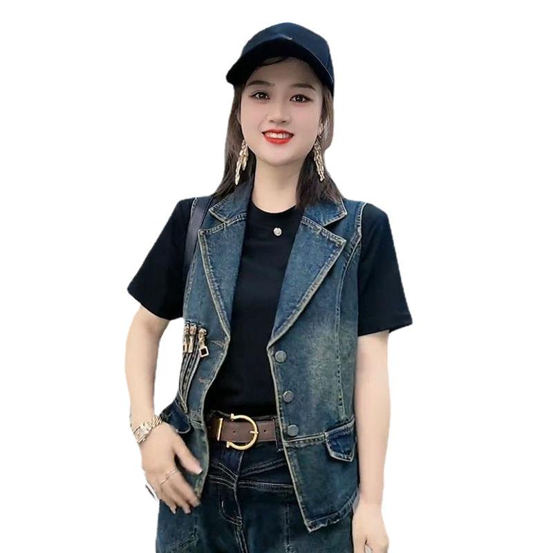 Винтажный джинсовый жилет, женский корейский модный жилет без рукавов с лацканами, повседневная куртка