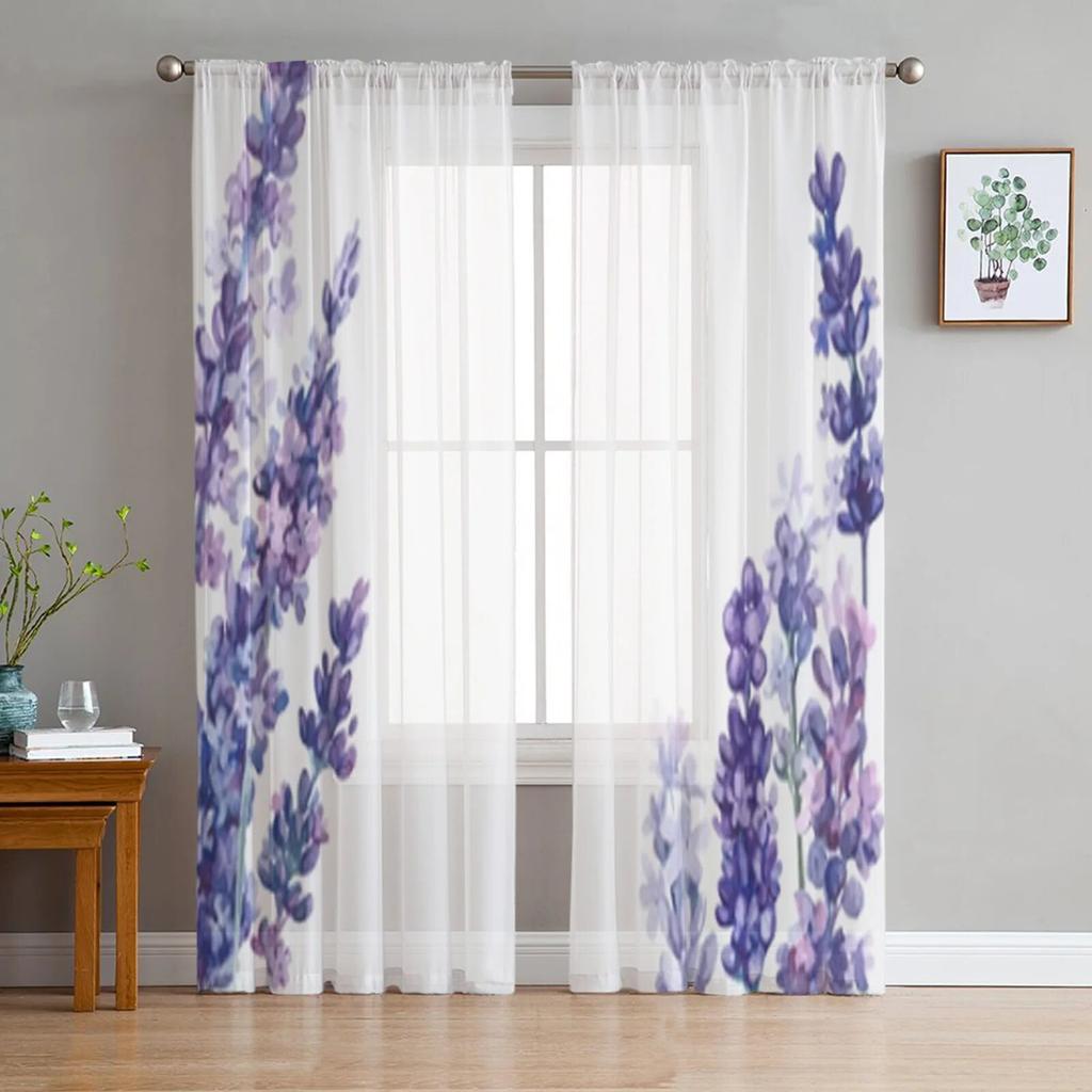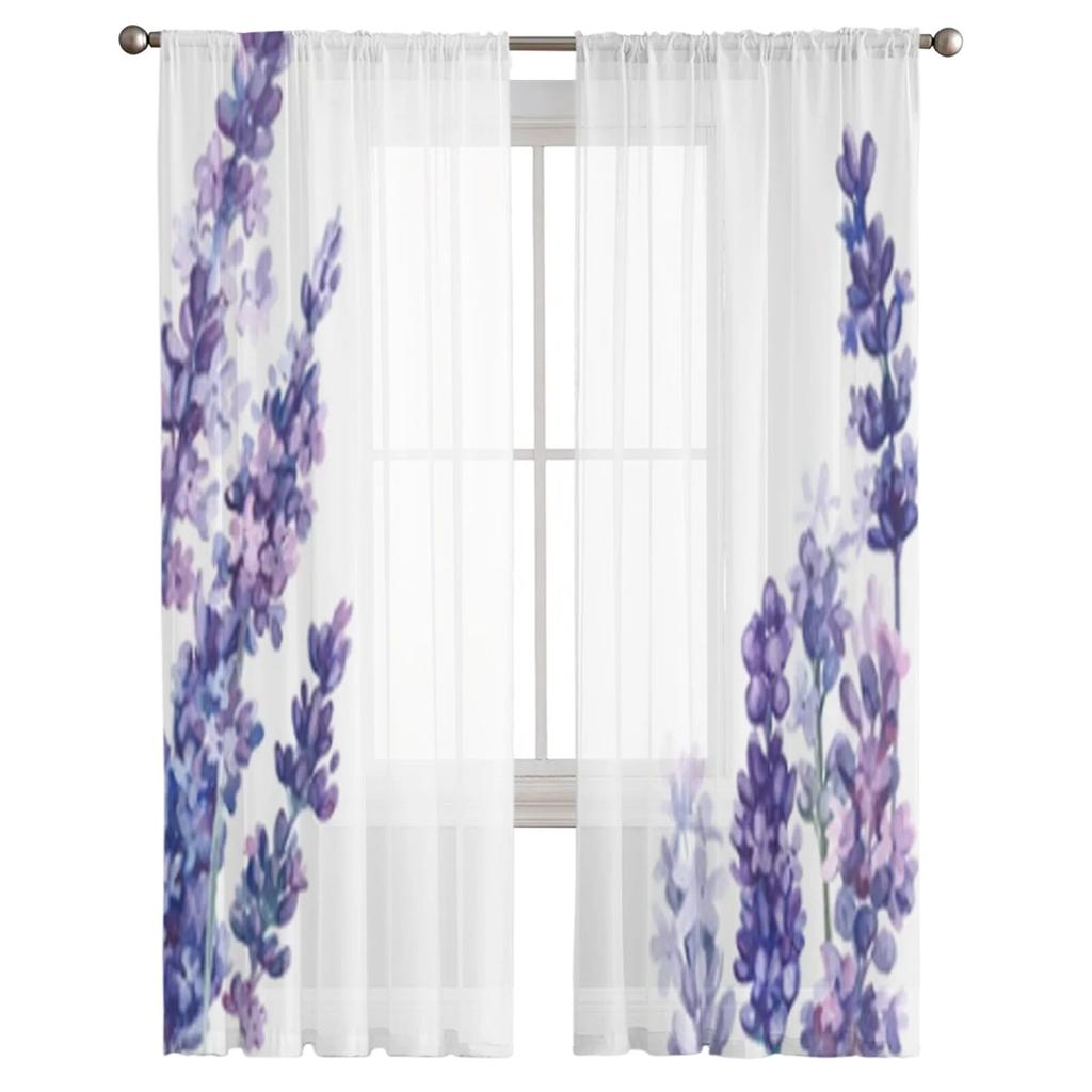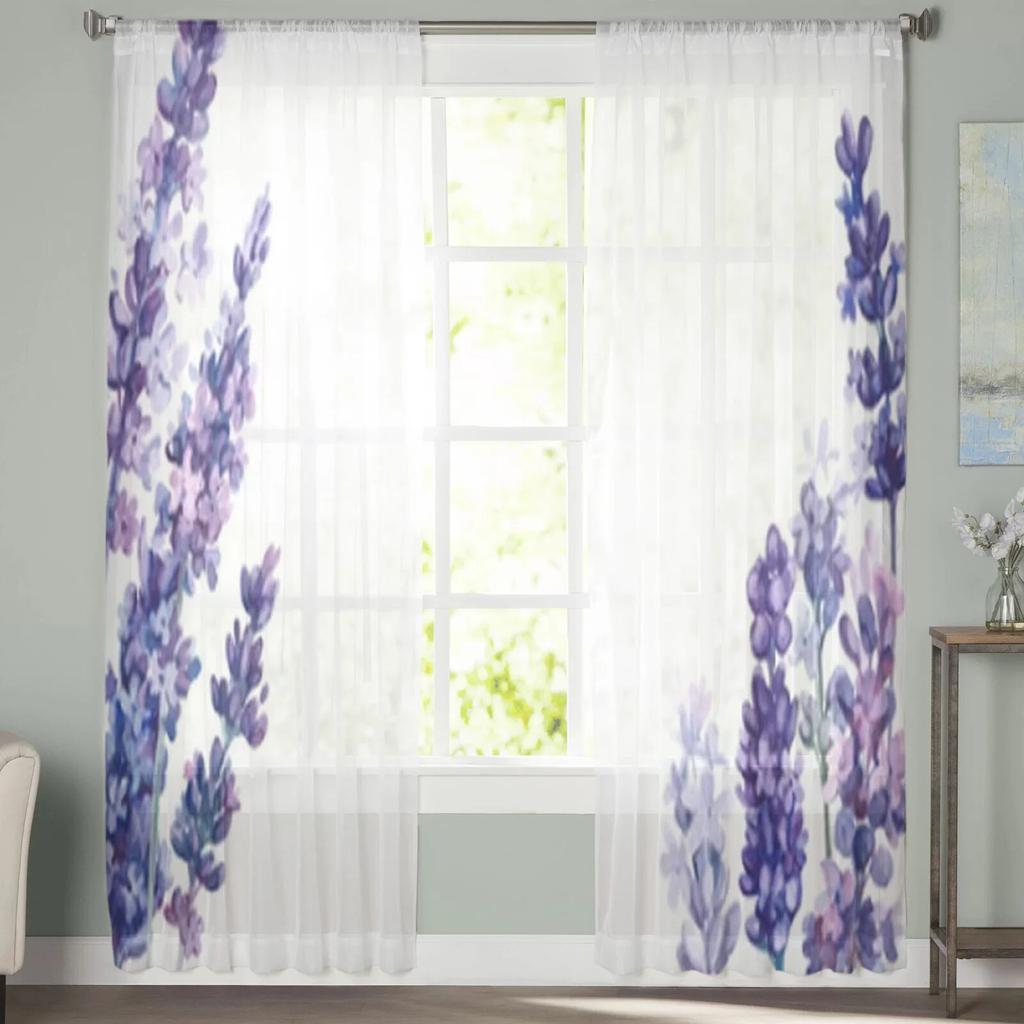 Цветок лаванды, акварель, прозрачные оконные шторы для гостиной, спальни, современная вуаль, тюлевые шторы, тканевые шторы для кухни