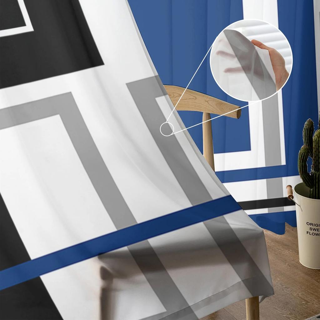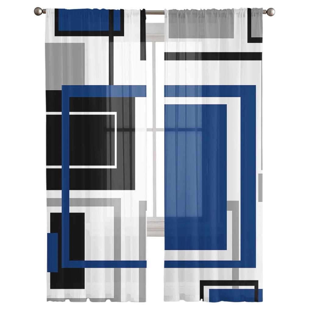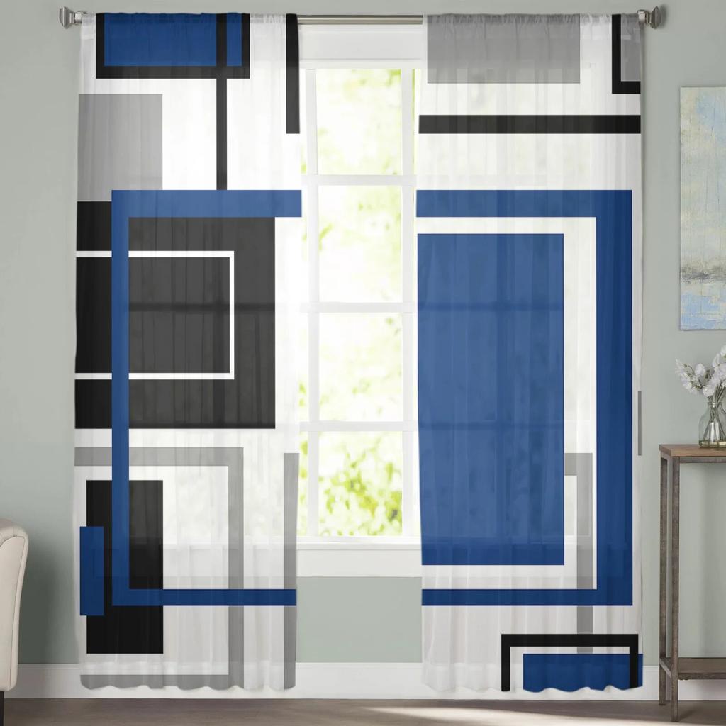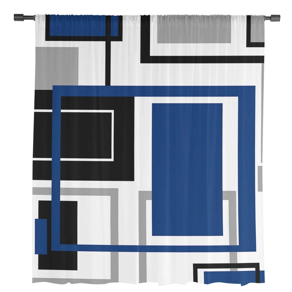 Абстрактные геометрические квадраты, современное искусство, оконные шторы, прозрачный шифоновый тюль, занавеска для дома, гостиной, фоновое украшение