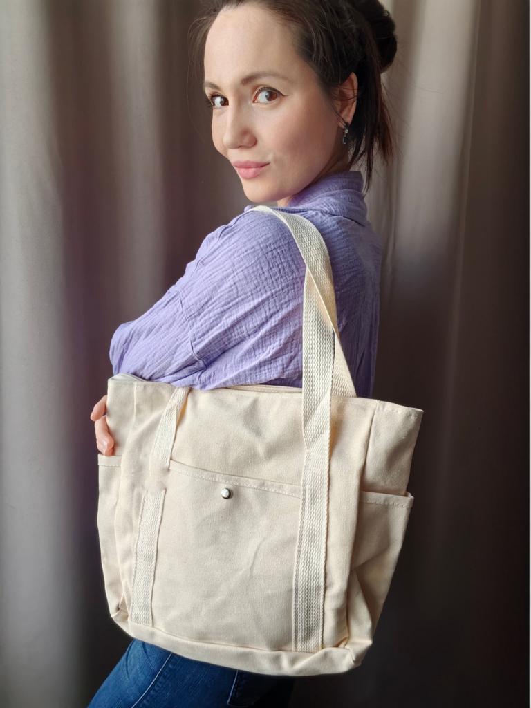 Холщовая сумка. + промокод на скидку E4S46FGRLC Практичная и удобная. Очень вместительная. Универсальная модель женской сумки на руку и на плечо. Натуральная ткань из плотного хлопка. Хорошо держит форму. По бокам и спереди дополнительные кармашки. Внутри один огромный карман. Закрывается на молнию. Закрывается и открывается без проблем. Отличный вариант для повседневного использования летом. Размеры : 35х30х13 см Длина ремешка : 25 см Рекомендую