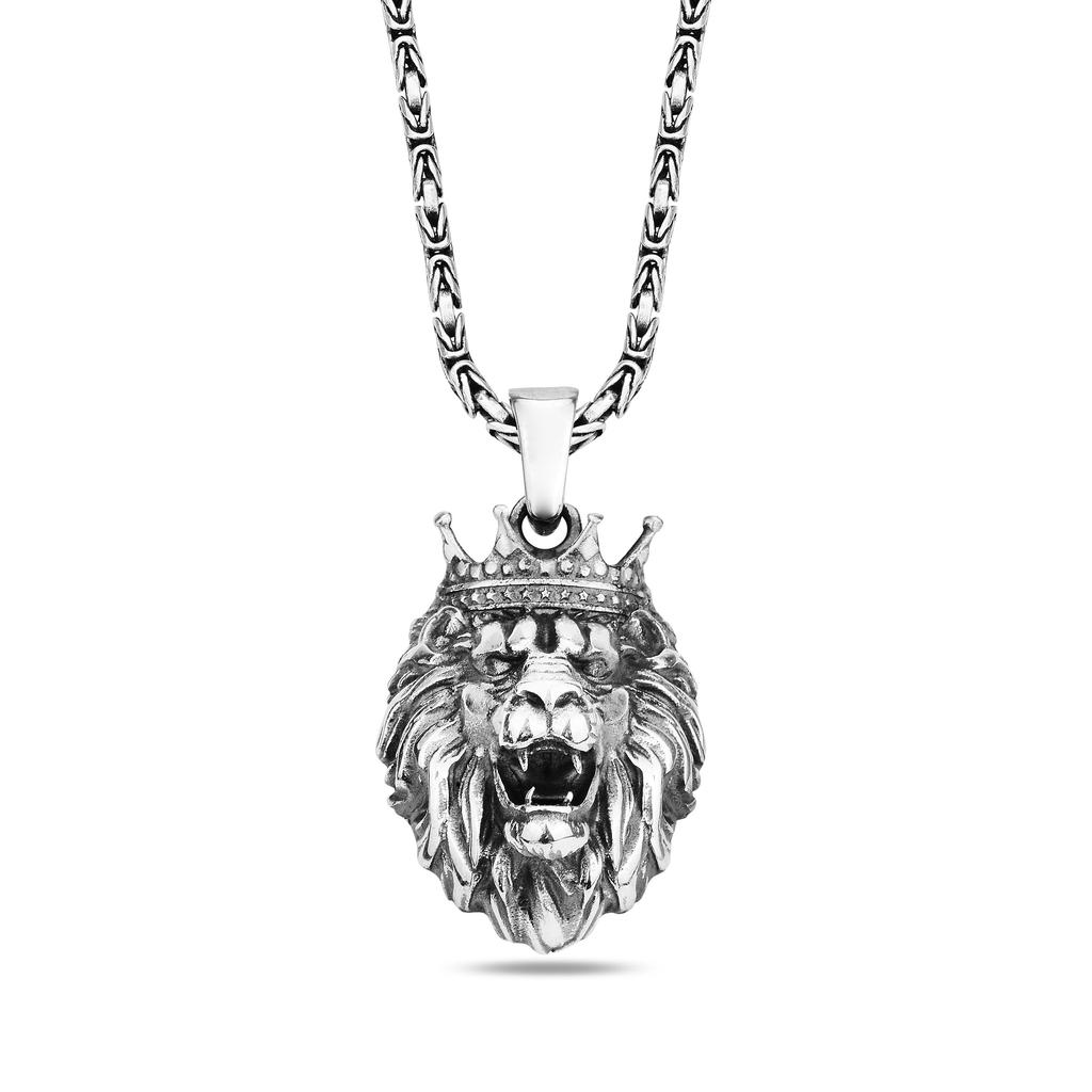 Мужское ожерелье с подвеской из серебра 925 карата с головой льва — турецкая византийская цепочка ручной работы — уникальный ремесленный дизайн — смелые мужские украшения