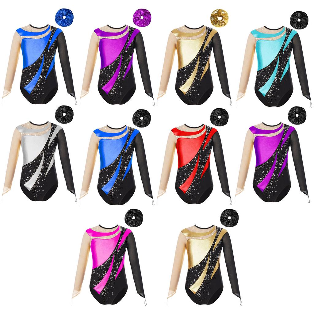 Детская танцевальная одежда для девочек, комбинезон-купальник с длинными рукавами и повязкой для волос для гимнастического фигурного катания на коньках — купить товар онлайн с бесплатной доставкой по всему миру!