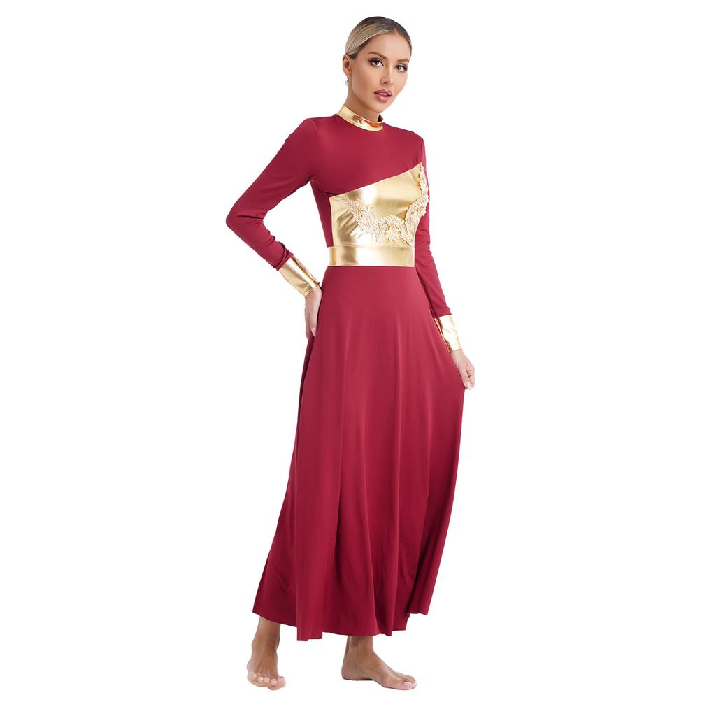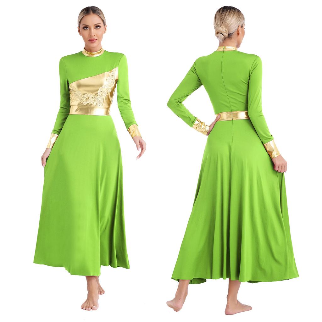 Лирическая танцевальная одежда с длинным рукавом и аппликацией, женское платье для литургического танца, современный бальный костюм для выступлений