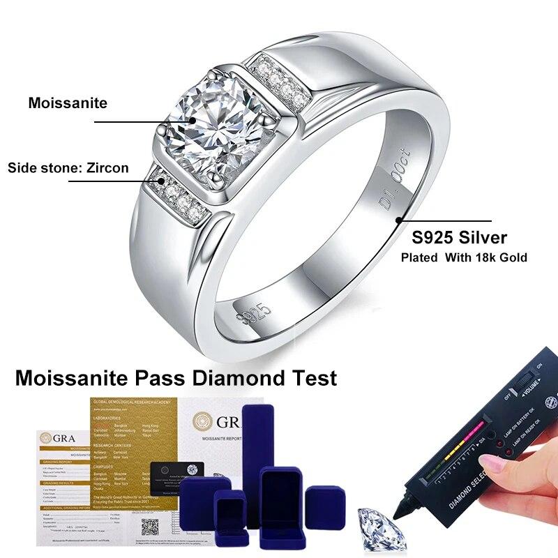 1ct D Цвет Муассанит Мужское Кольцо Стерлингового Серебра 925 пробы с Позолотой 18 К Обручальные Кольца Для Мужчин Свадебные Ювелирные Изделия