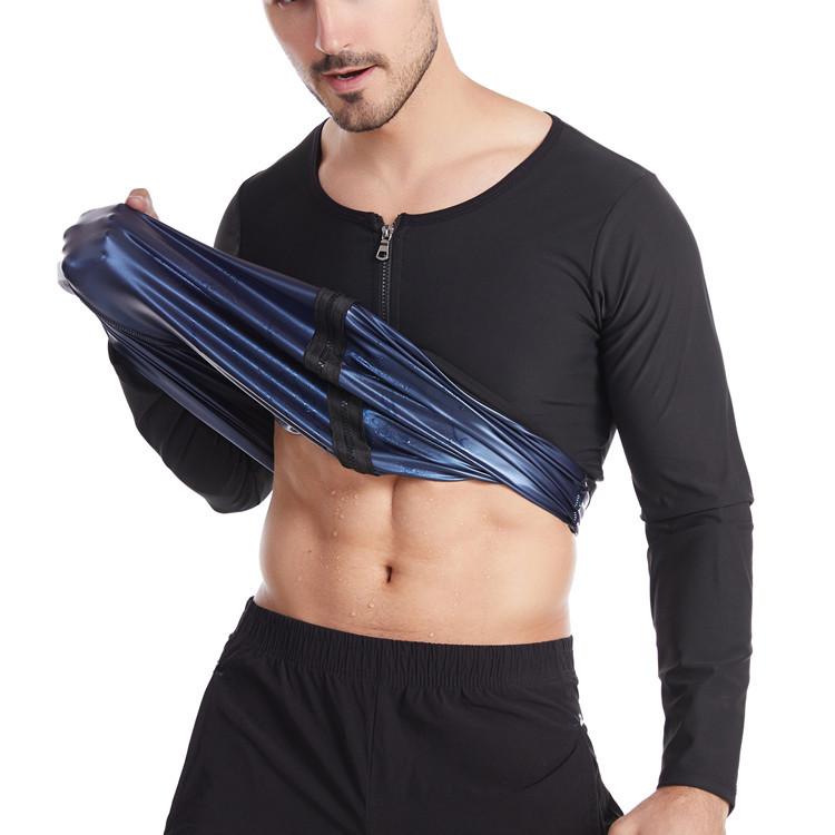 Мужская рубашка для сауны, толстовка на молнии с длинными рукавами, тренировочная майка, корректирующая одежда, бодибилдинг, костюм для сауны, толстовка для похудения, формирователь тела