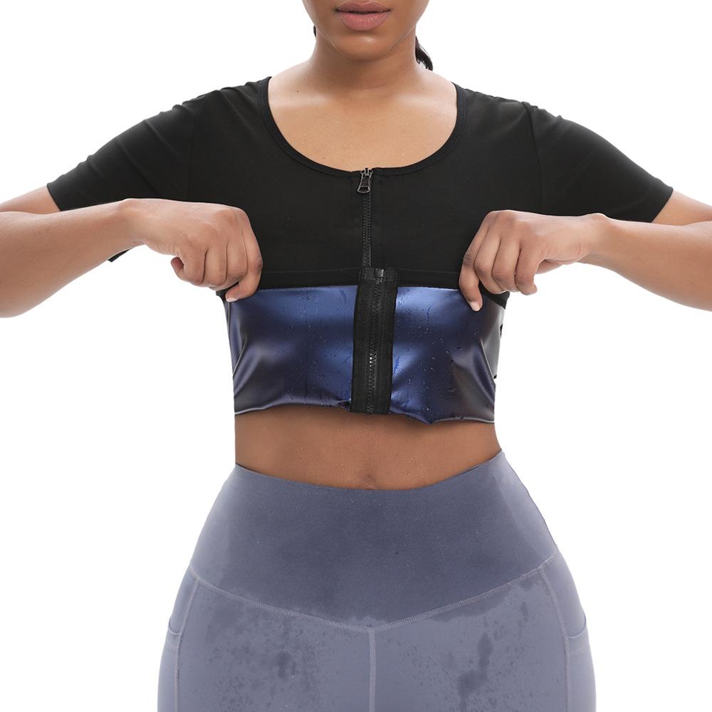 Женский костюм для сауны, толстовка с короткими рукавами, тренировочная куртка на молнии, талия, формирователь тела, сжигание жира, корректирующее белье для бега, спортивные топы — купить товар онлайн с бесплатной доставкой до всему миру!