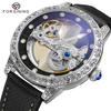 FORSINING брендовые автоматические серебряные светящиеся часы с автоподзаводом и скелетоном, роскошные мужские кожаные часы, стальные механические часы