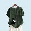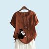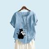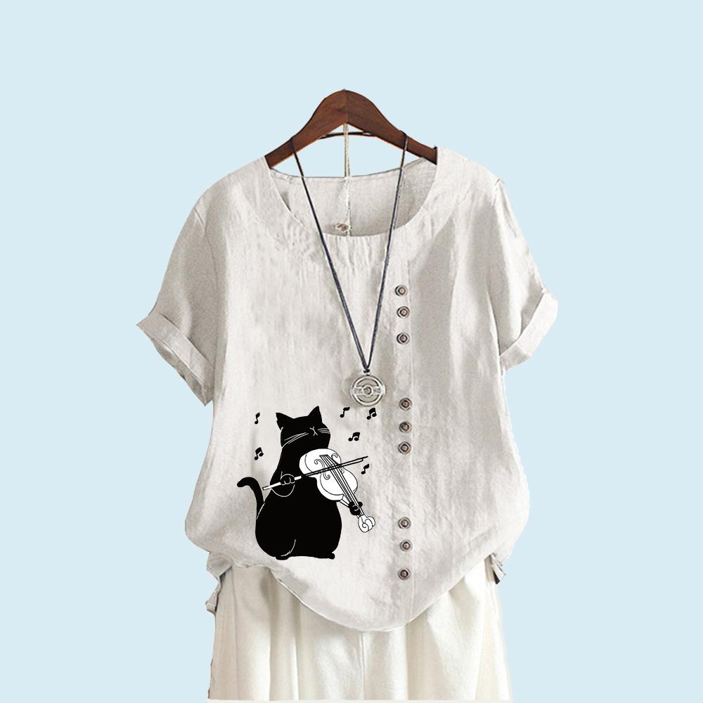 Женская модная футболка с коротким рукавом, летняя и осенняя повседневная верхняя одежда с круглым вырезом и принтом кота, пуловер, свободные хлопковые льняные блузки — купить товар онлайн с бесплатной доставкой до всему миру!