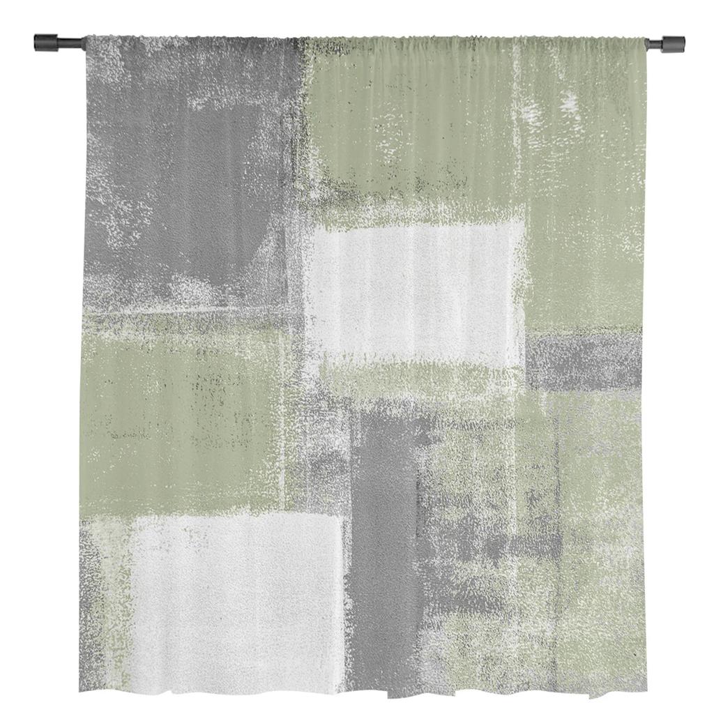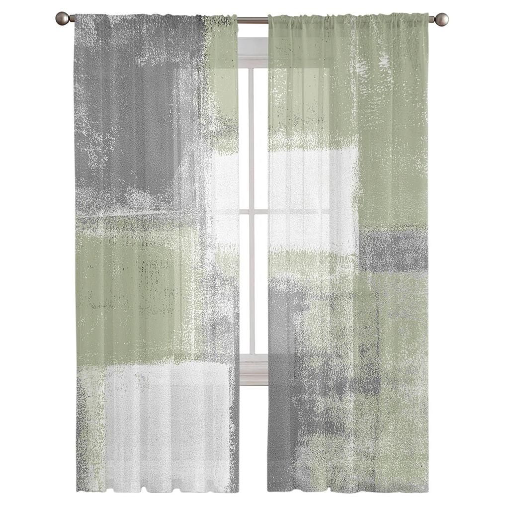 Зеленая шалфейная картина маслом, текстурная краска, тюлевая занавеска для гостиной, спальни, рождественское украшение, оконная вуаль, тюлевая занавеска