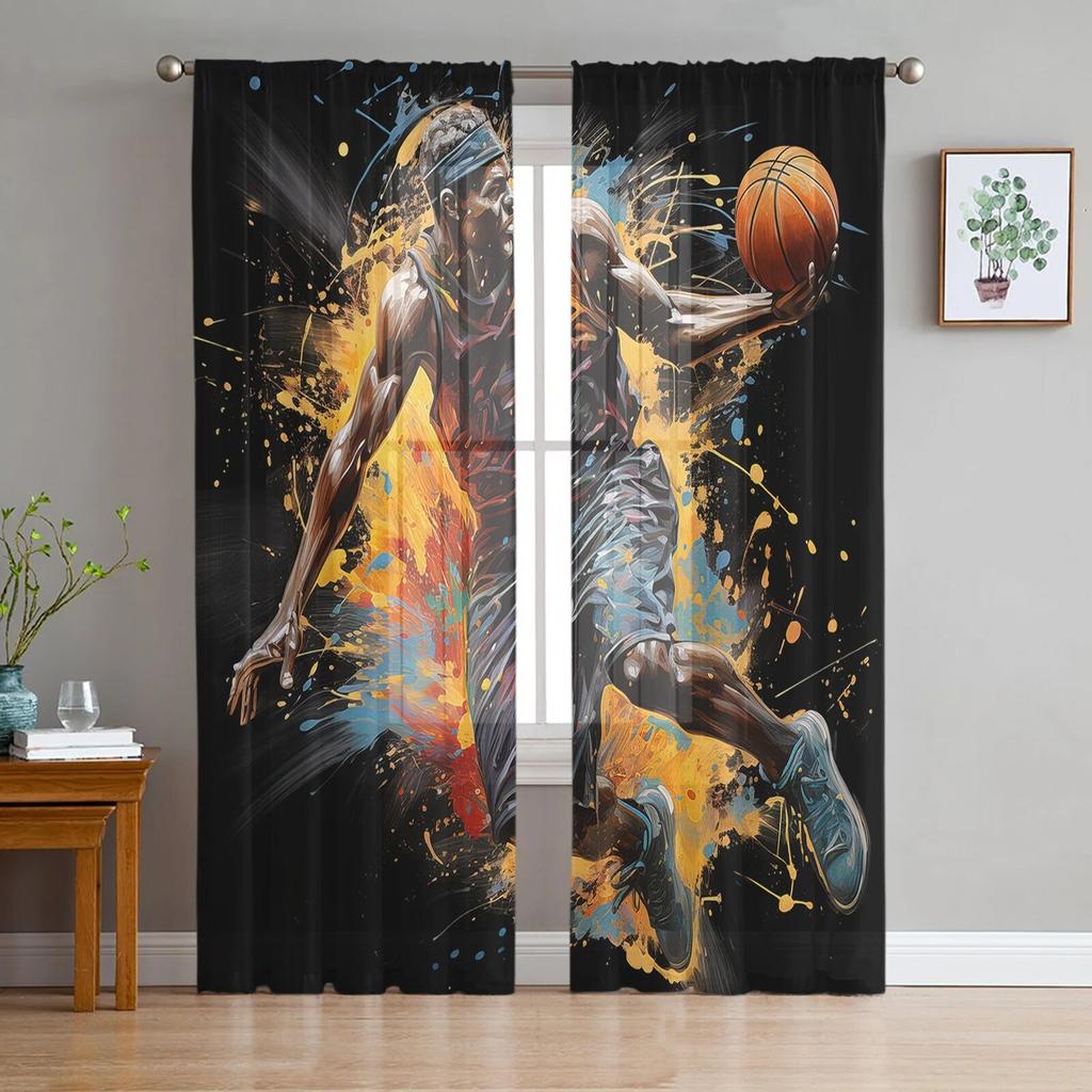 Спортивный Стиль Спортсмен Баскетбол Тюлевые Шторы Для Гостиной Прозрачные Шторы Для Спальни Кухонные Жалюзи Вуаль Шторы