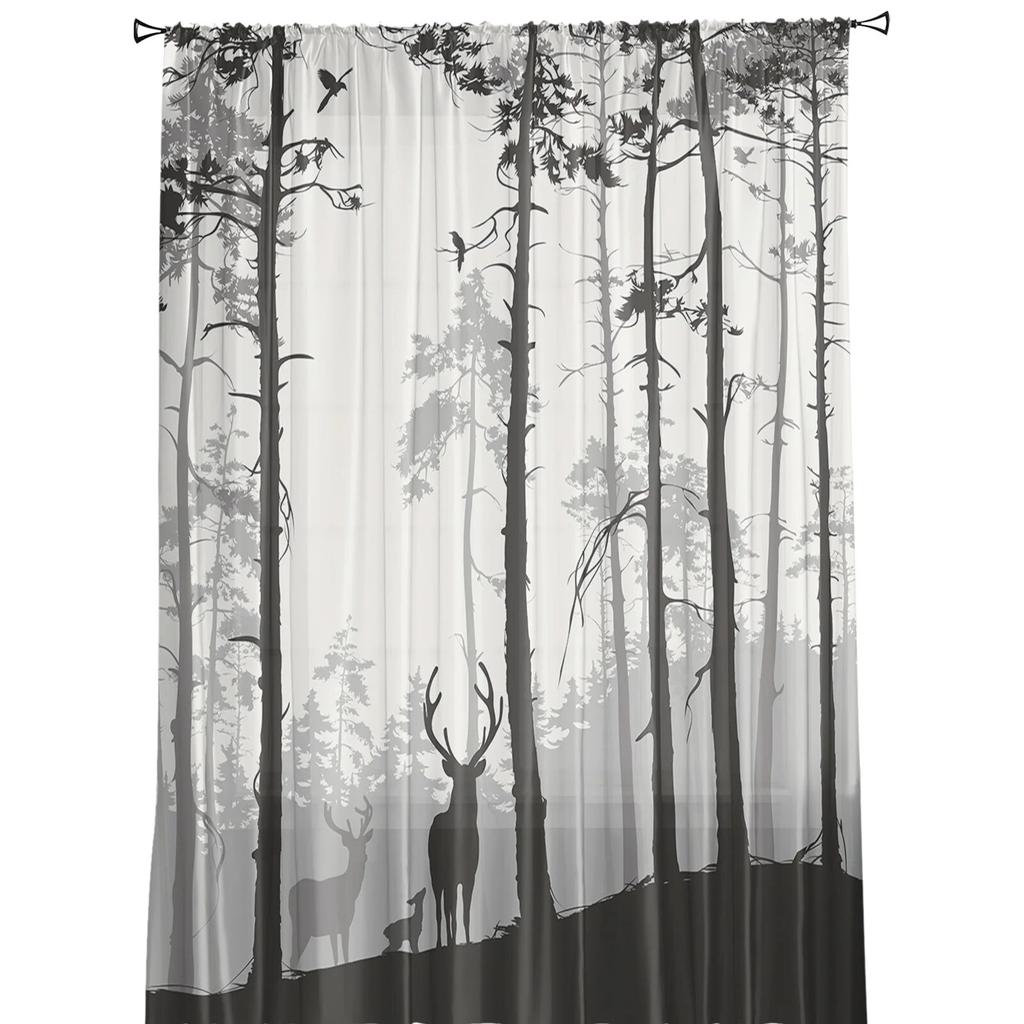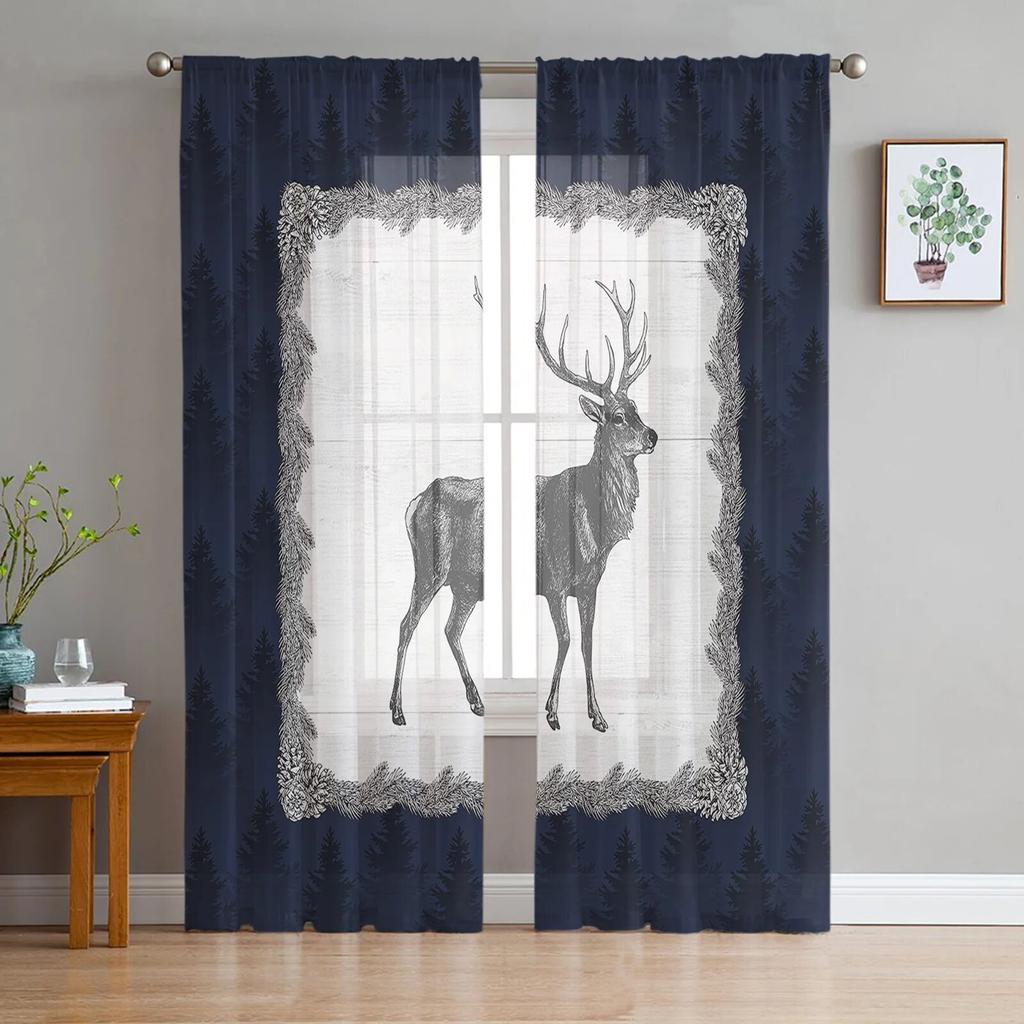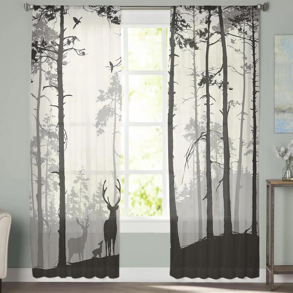 Тюлевые шторы с силуэтом оленя и сосны для гостиной, прозрачные шторы для спальни, кухни, оконные занавески