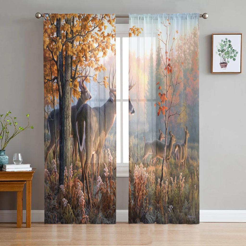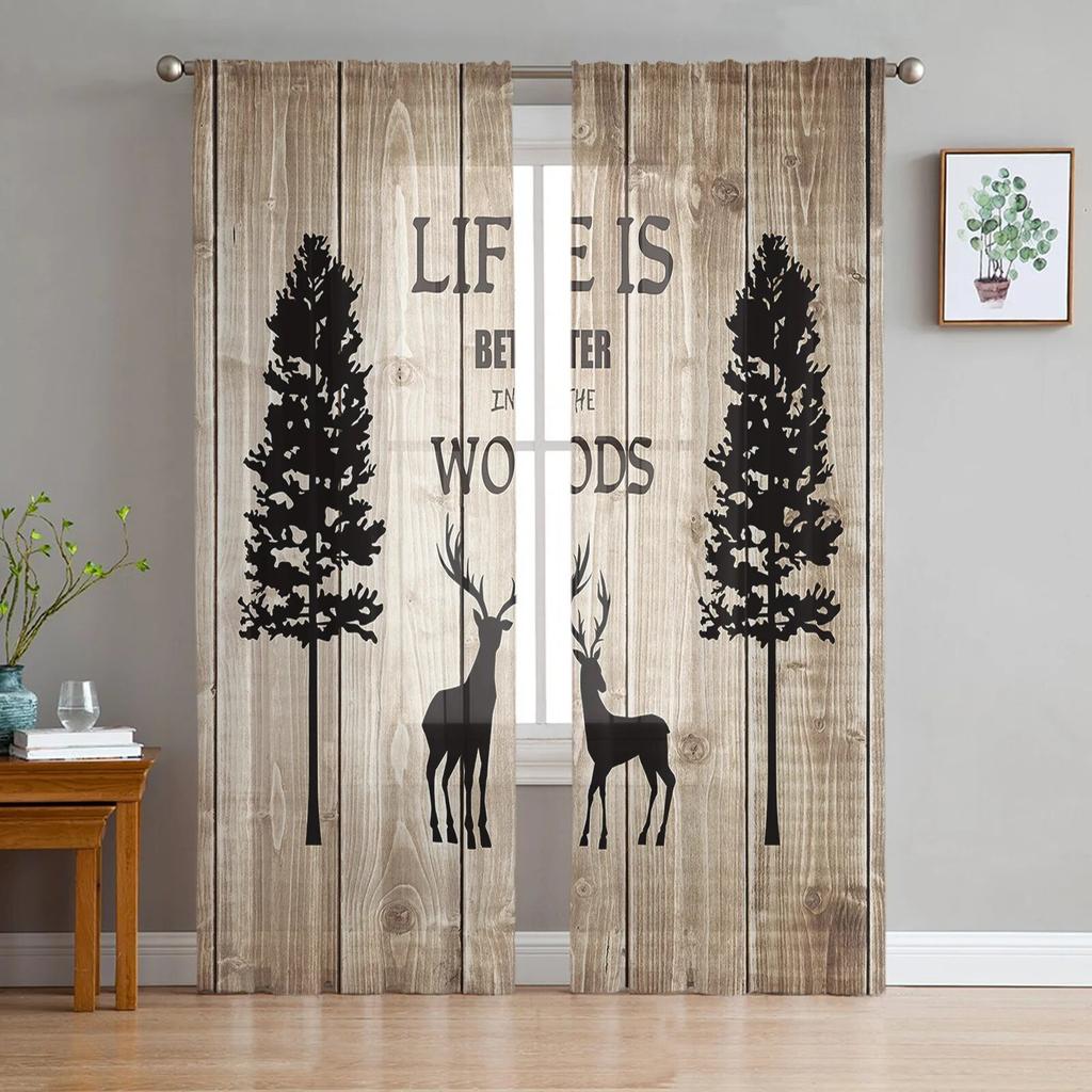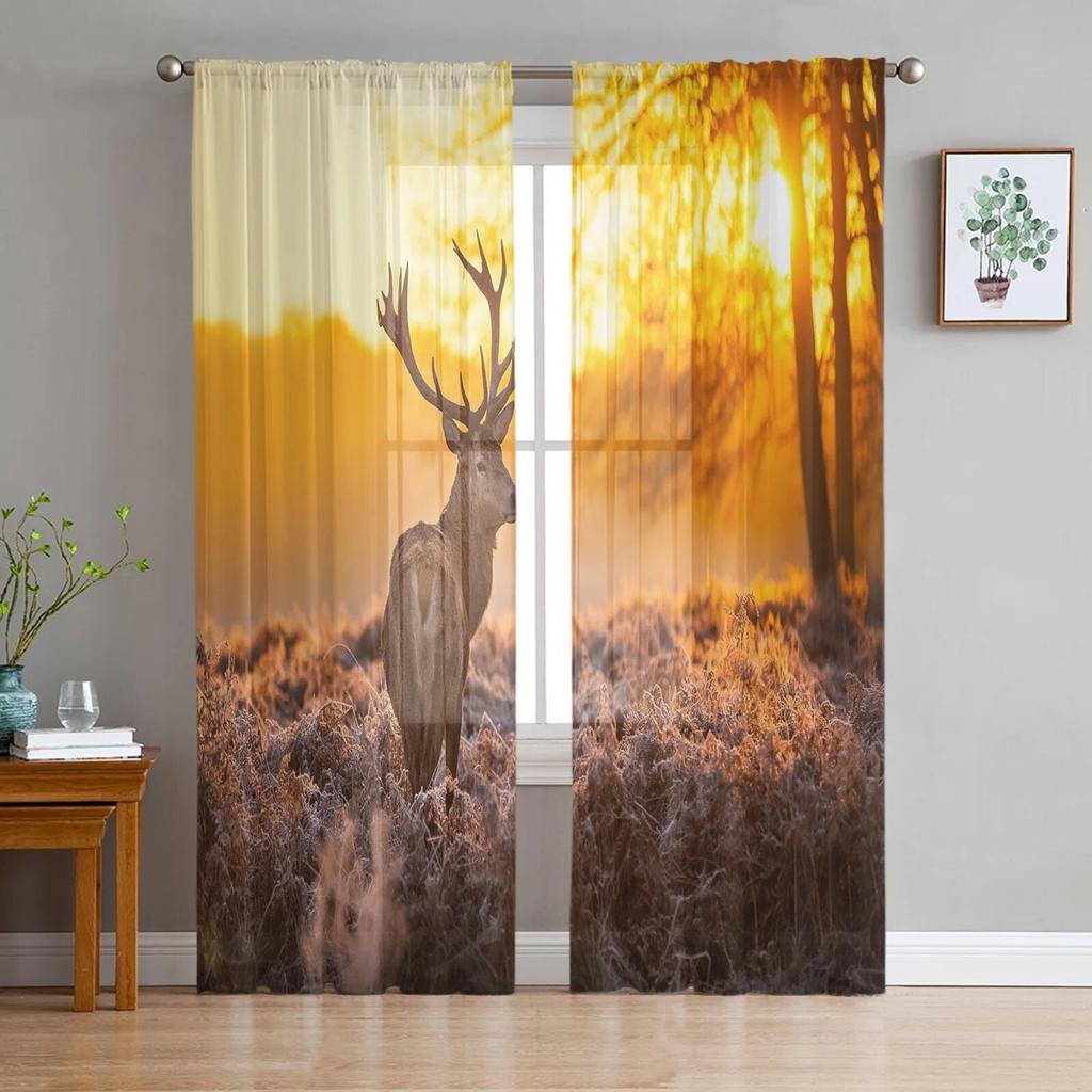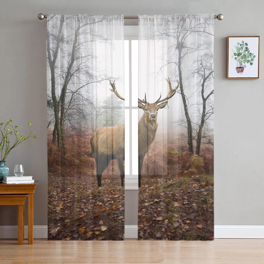 Тюлевые шторы с силуэтом оленя и сосны для гостиной, прозрачные шторы для спальни, кухни, оконные занавески