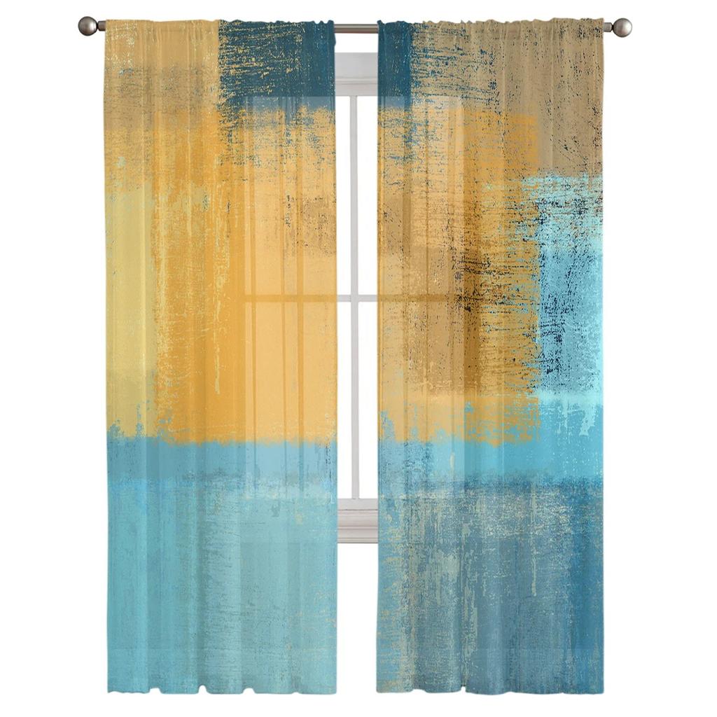 Абстрактная картина маслом оранжевого цвета, прозрачные шторы для гостиной, спальни, домашний декор, кухня, тюль для окон, вуаль, шторы
