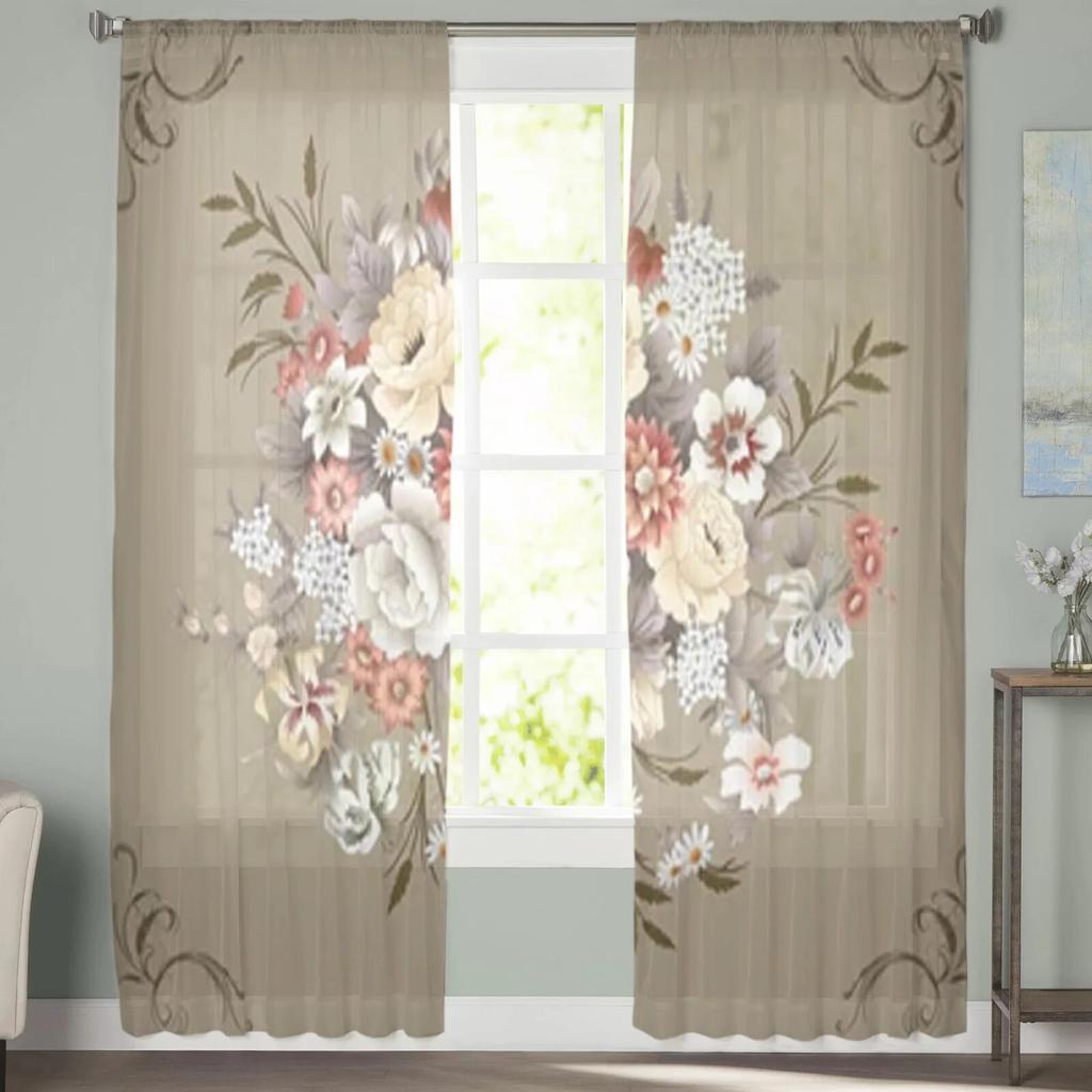 Прозрачные шторы с цветочным узором, вуаль для спальни, занавеска для гостиной, окна, прозрачные шторы для кухни, тюлевые шторы