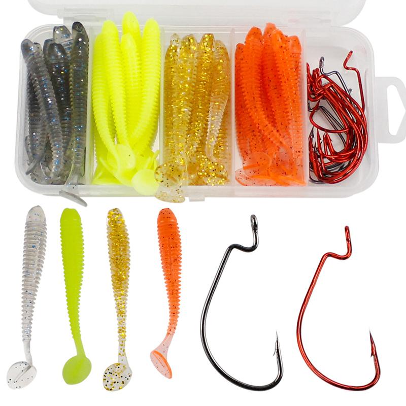60 шт. T-Tail Road Runner Мягкая наживка с кривошипным крючком Комбинированный набор Поддельные наживки Набор рыболовных снастей — купить товар онлайн с бесплатной доставкой по всему миру!